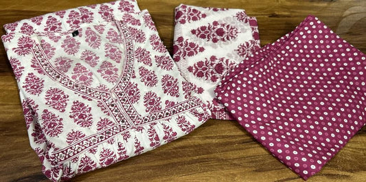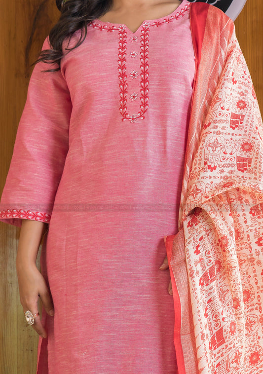 Glorious Khadi Cotton Kurti Set(Approaching Pink)