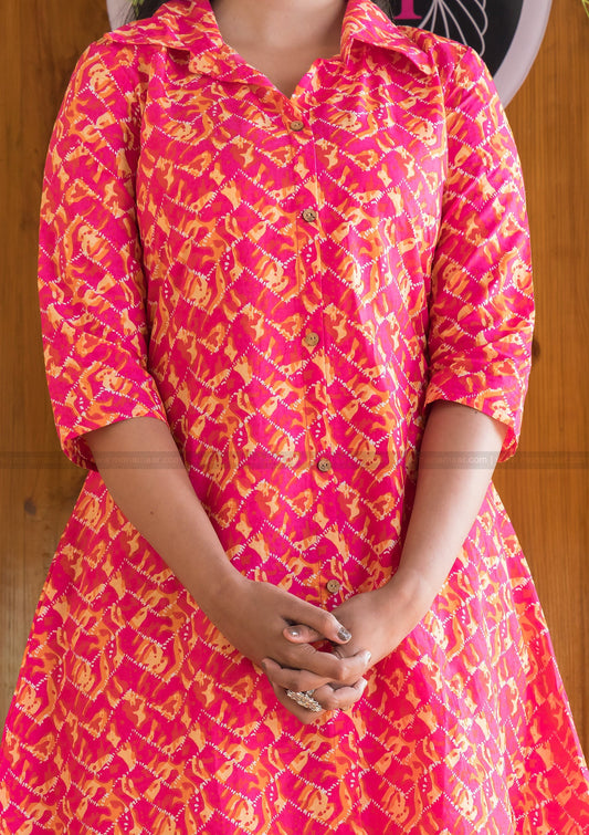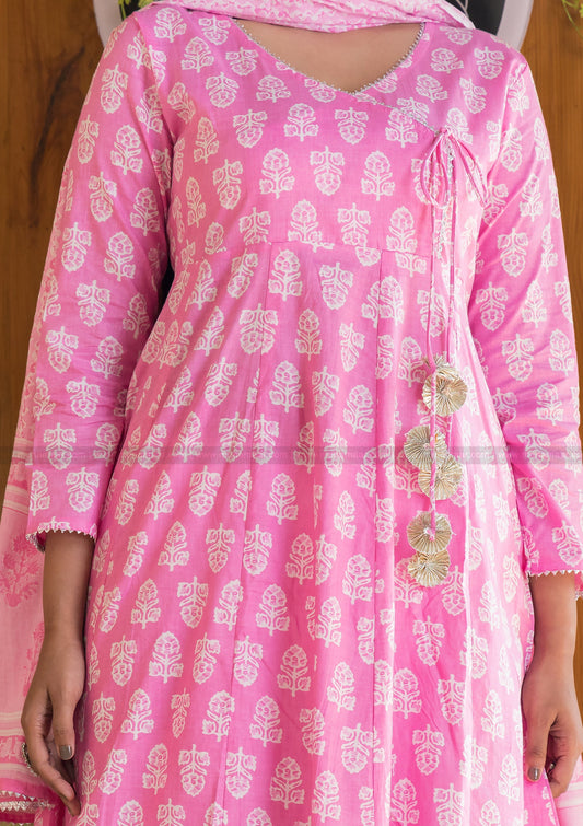 Cotton Candy Beautiful Angrakha Style Pink Cotton Kurti Set