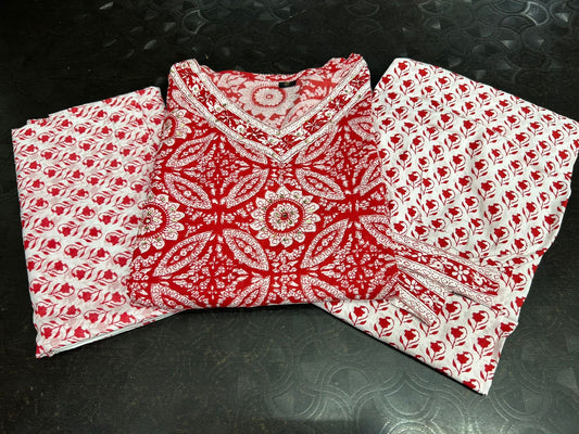 Gift Of Red With Cute Pockets Cotton Kurti Set