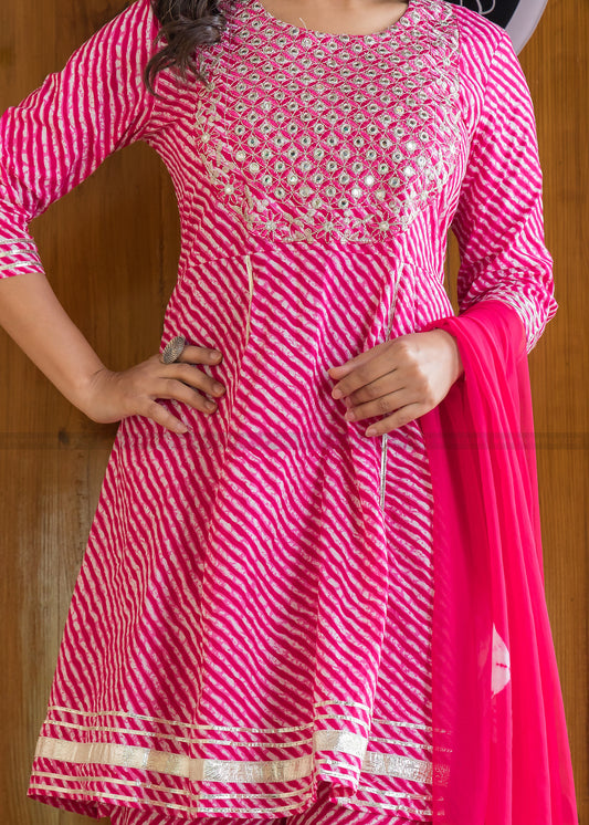 Cotton Candy Beautiful Angrakha Style Pink Cotton Kurti Set