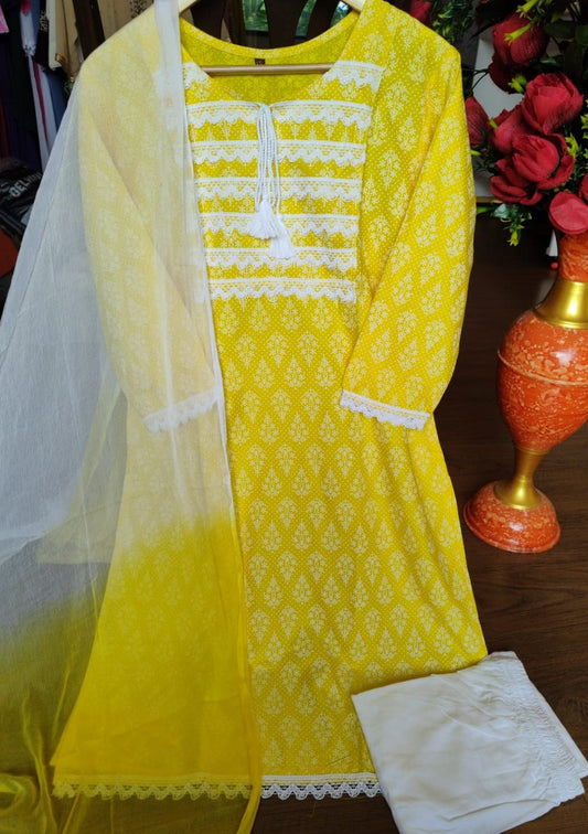 Pastel love Jaipur Kurti Set(Emerging Yellow)