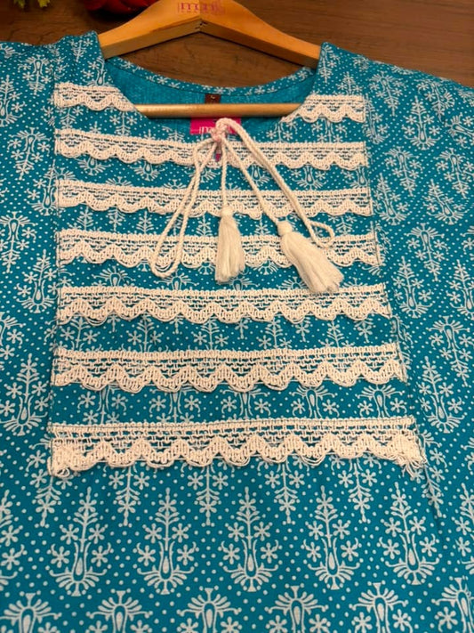 Pastel love Jaipur Kurti Set(Sweetheart Blue)