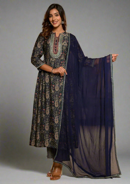 Charismatic Indigo Jaipur Cotton Kurti Set