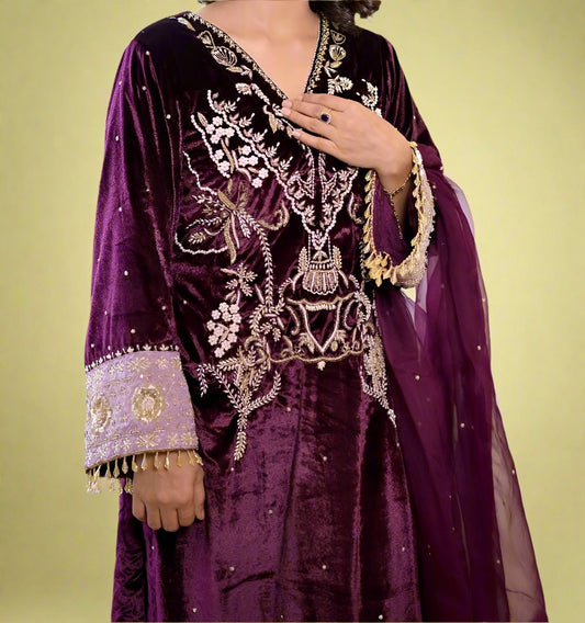Goddess Of Shimmer Chinnon Silk Purple Gown