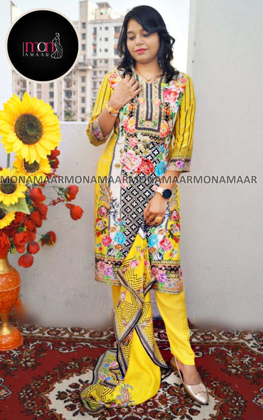Golden Hour- Pakistani Style Muslin Crepe Silk Kurti set