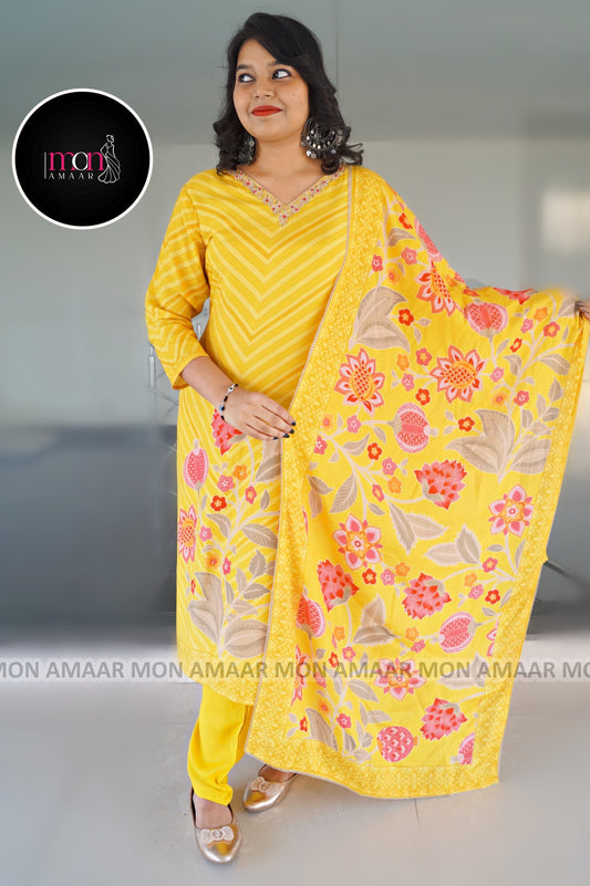 Shades Of Yellow Cotton Kurti Set