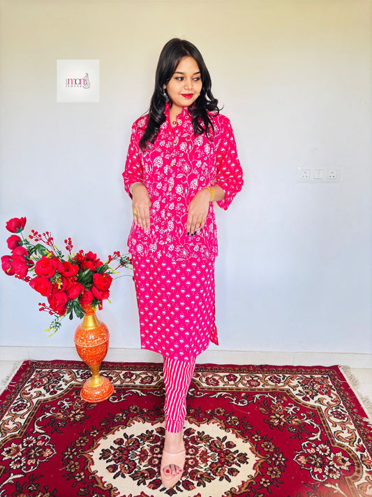 Hues Carnation Cotton Kurti Set