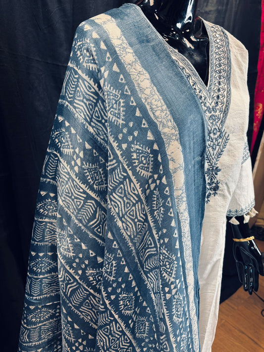 White Hills Cotton Kurti Set