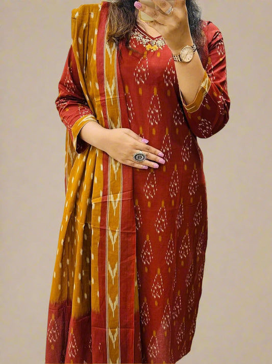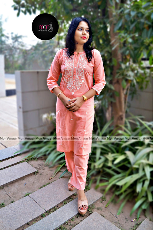 Spice Rose Cotton Kurti Set