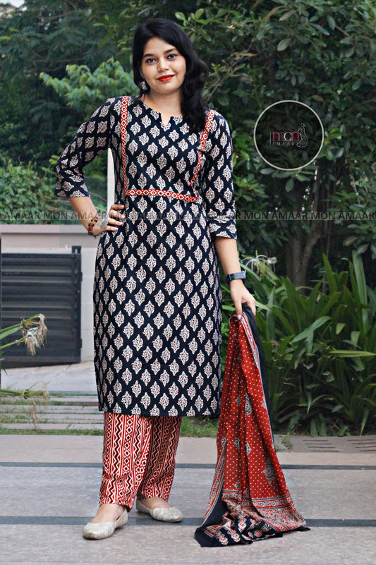 New Arrival - Ajrakh Print Cotton Kurti Set