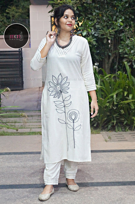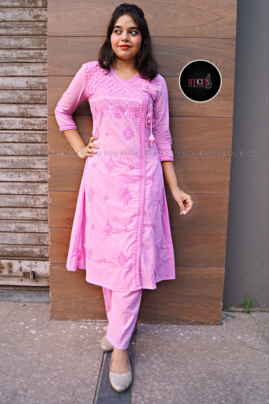 Chikankari Fun - Cotton Kurti Set(Lavender)