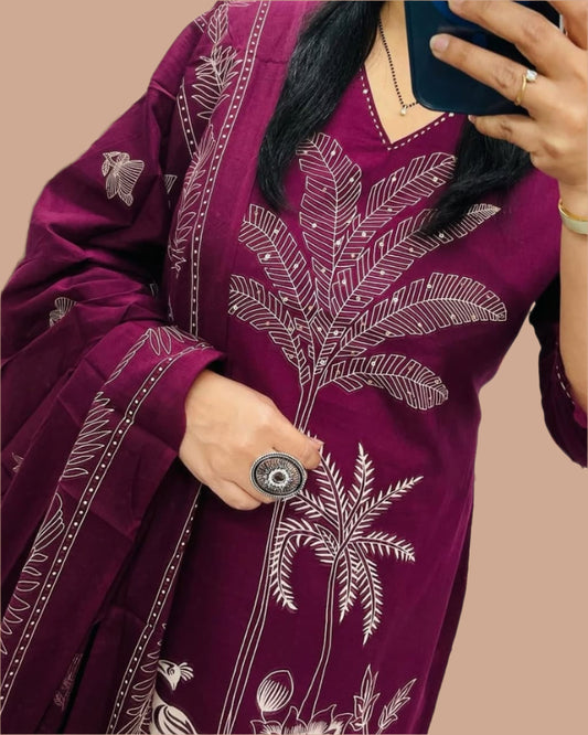 Purple Heart Cotton kurti Set - With Tulip Style Pant