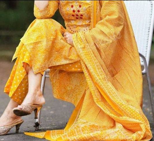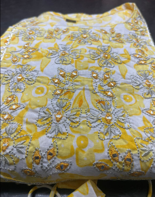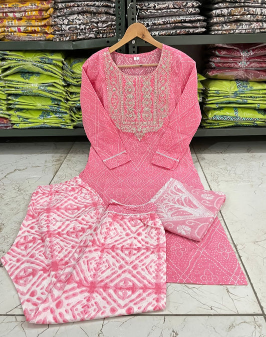 Cotton Anarkali Kurti with Pant and Malmal Dupatta