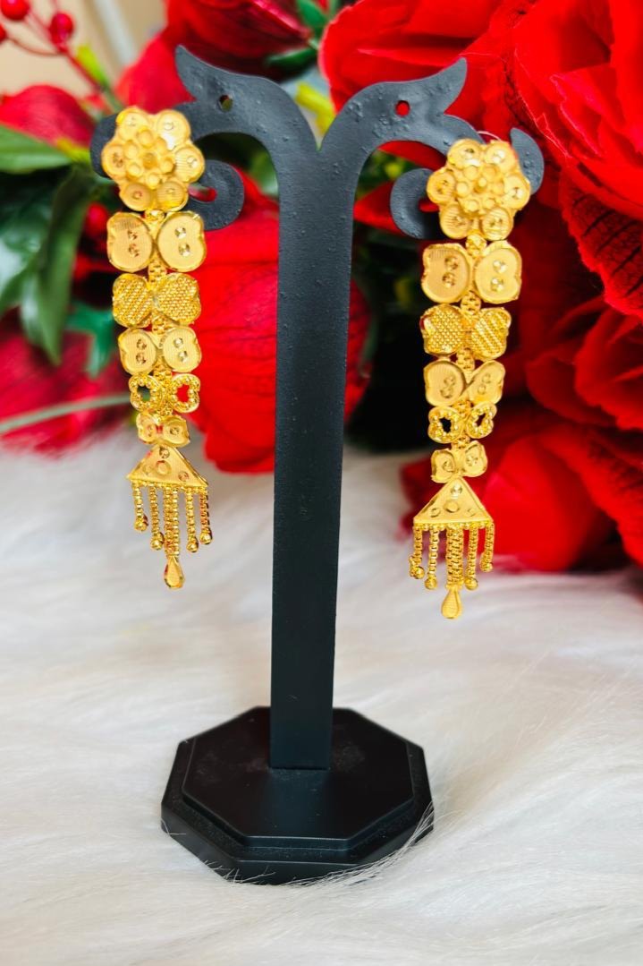 As an long earrings lover in the industry, we present to you the Gold Plated Earrings. These elegant flower design earrings are perfect for any Earringslover, providing a stunning and unique look. Enjoy the best quality at an affordable price.