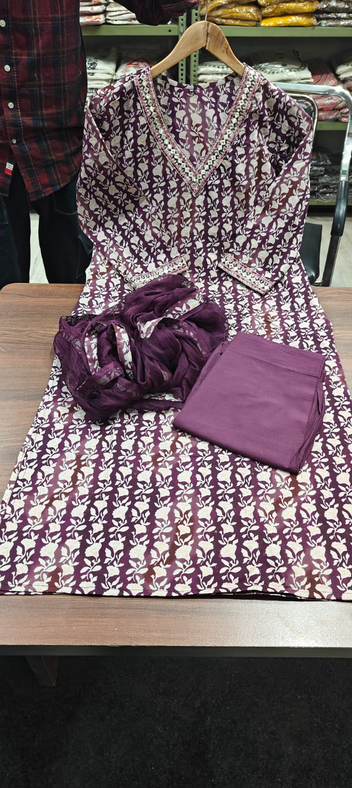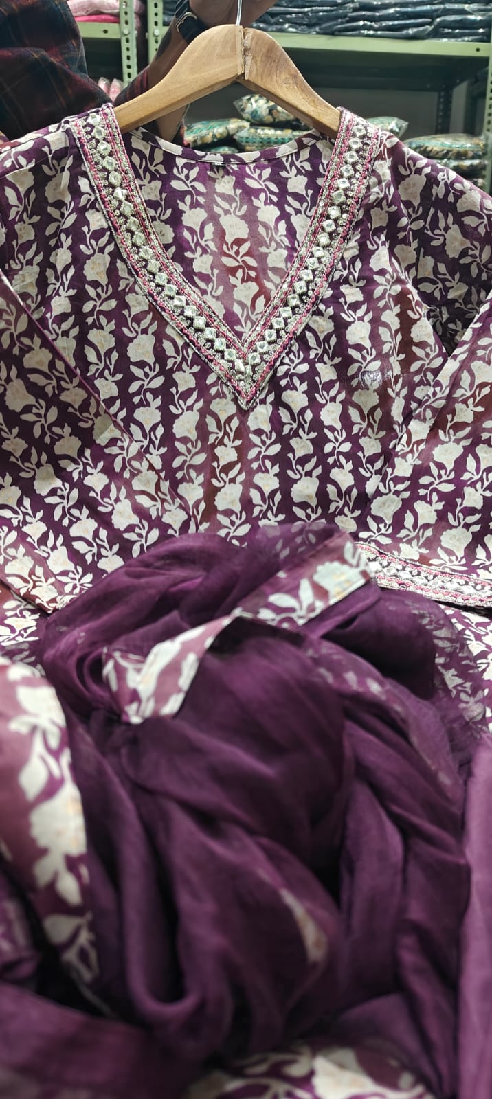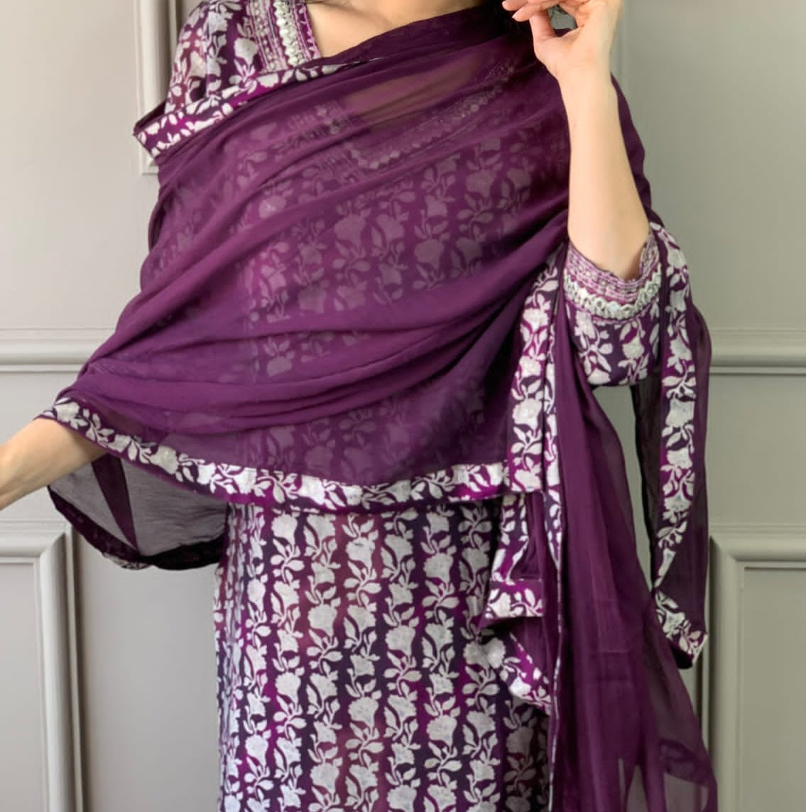 Introduce the latest fashion trend with the As You Wish Designer Suit Set. This stunning set features a straight kurti, cotton pants, and a Nazneen Dupatta .The Set adorned with delicate embroidery, Sequins, and Mirror work. The kurti, measuring 46 inches in length(approx), is designed for both comfort and style, as are the 39-inch(approx) pants and 2.15-meter dupatta. Elevate your wardrobe with this must-have set.