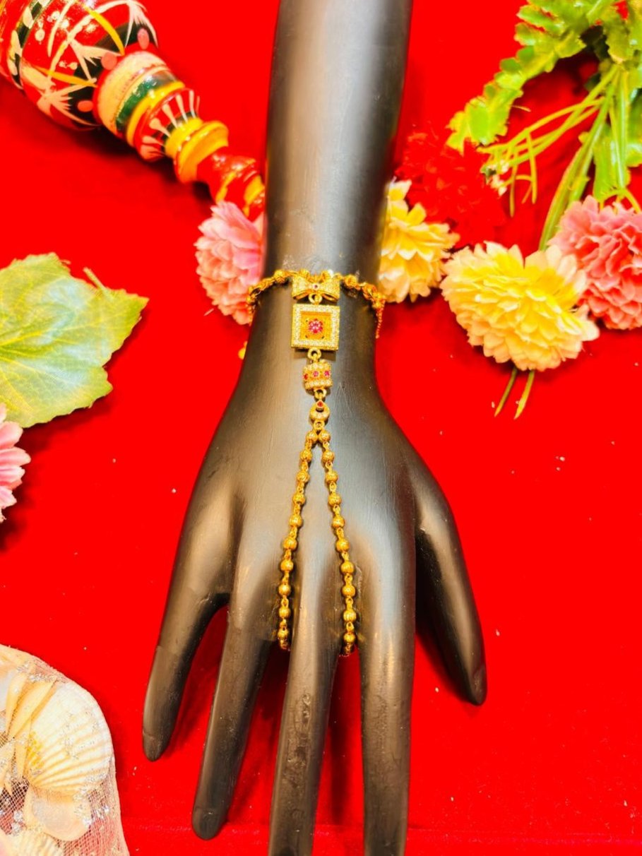 - The Gold Plated Haath Phool is also known as Hath Panja, a traditional Indian hand jewellrey. This bracelet connects finger rings with a chain and is often worn by brides to symbolize good fortune and prosperity.