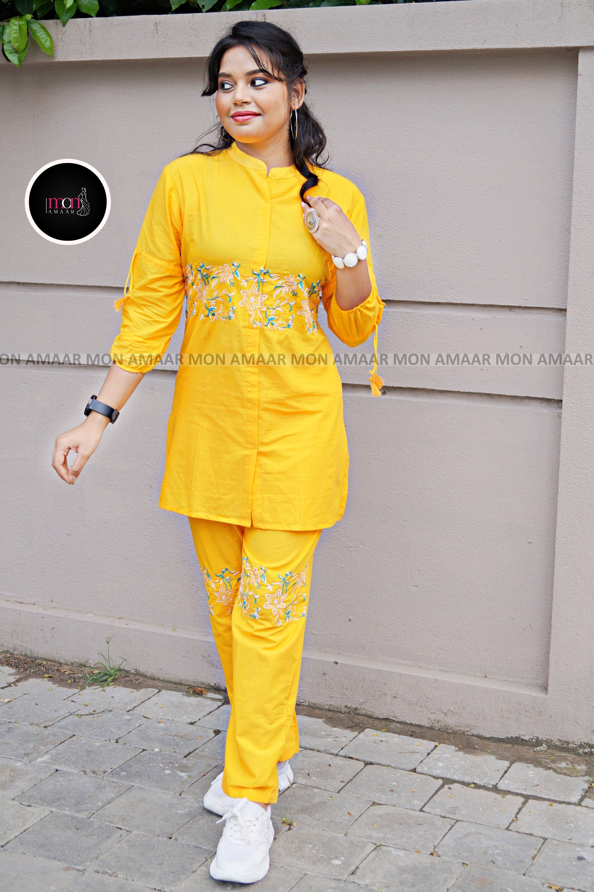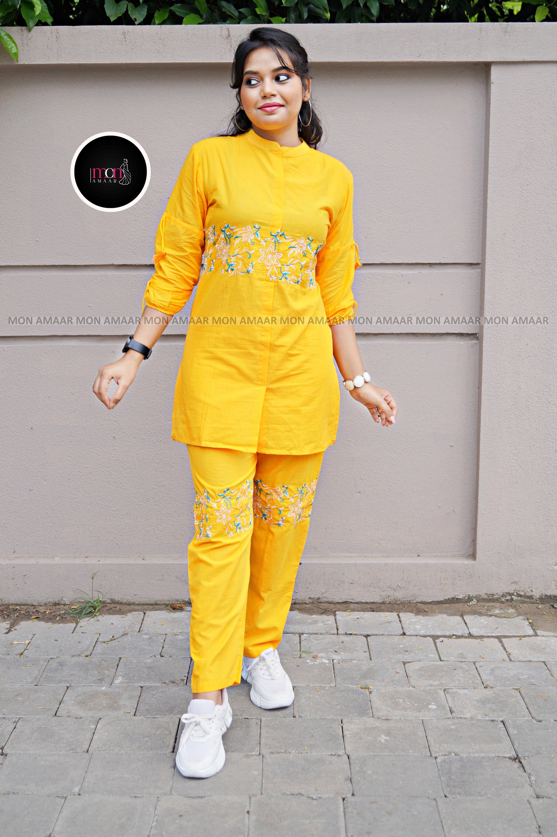 This Co-Ord Set in yellow mustard color is the perfect combination of style and comfort. Made with beautiful embroidery and stylish balloon sleeves, it's the ideal choice for traveling and can be worn comfortably in all seasons. Upgrade your wardrobe with this versatile set.