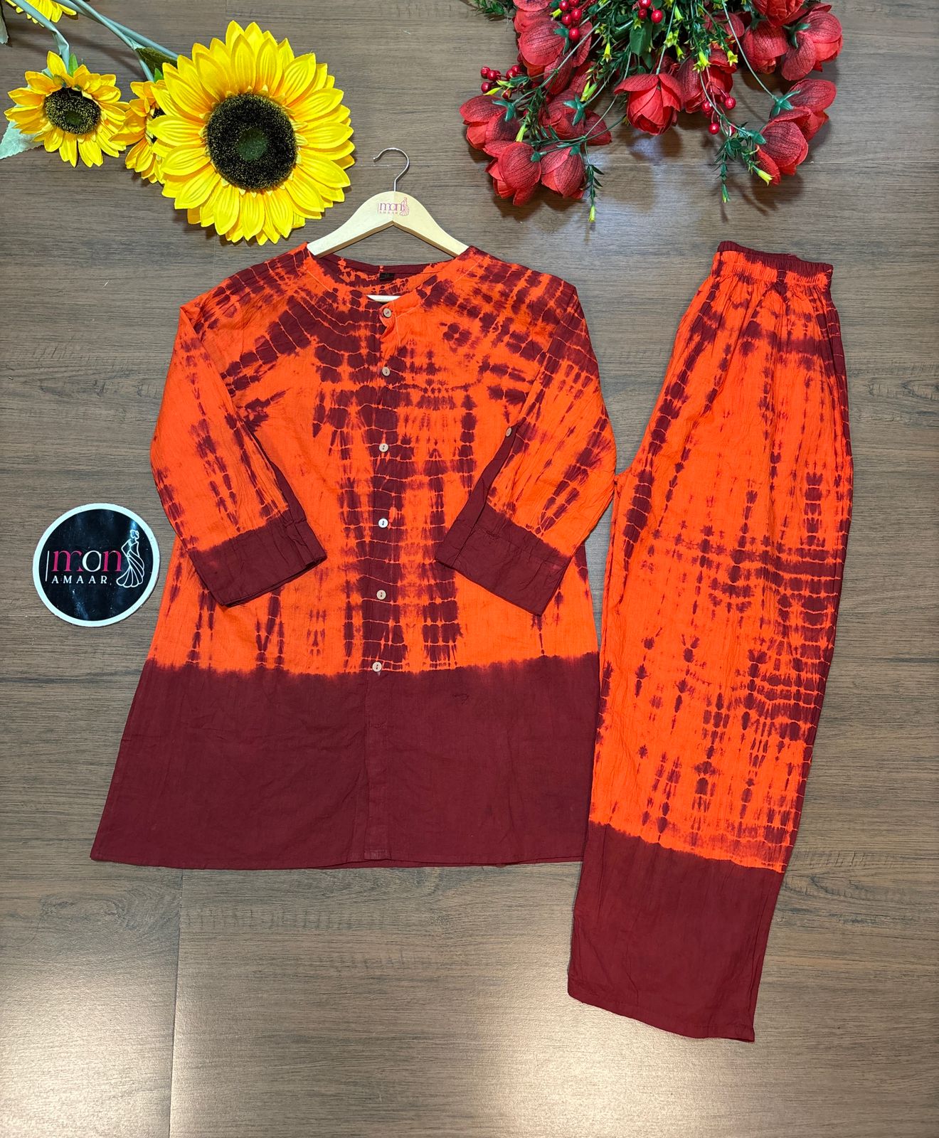 Introducing our tie dye Colors Cotton Cord Set a timeless classic for versatile elegance. This stunning coords set features likes tie dye style print work that is trendy and gorgeous. Made with high-quality cotton , this set is not only cool but also comfortable to wear. Elevate your style game with this must-have set!