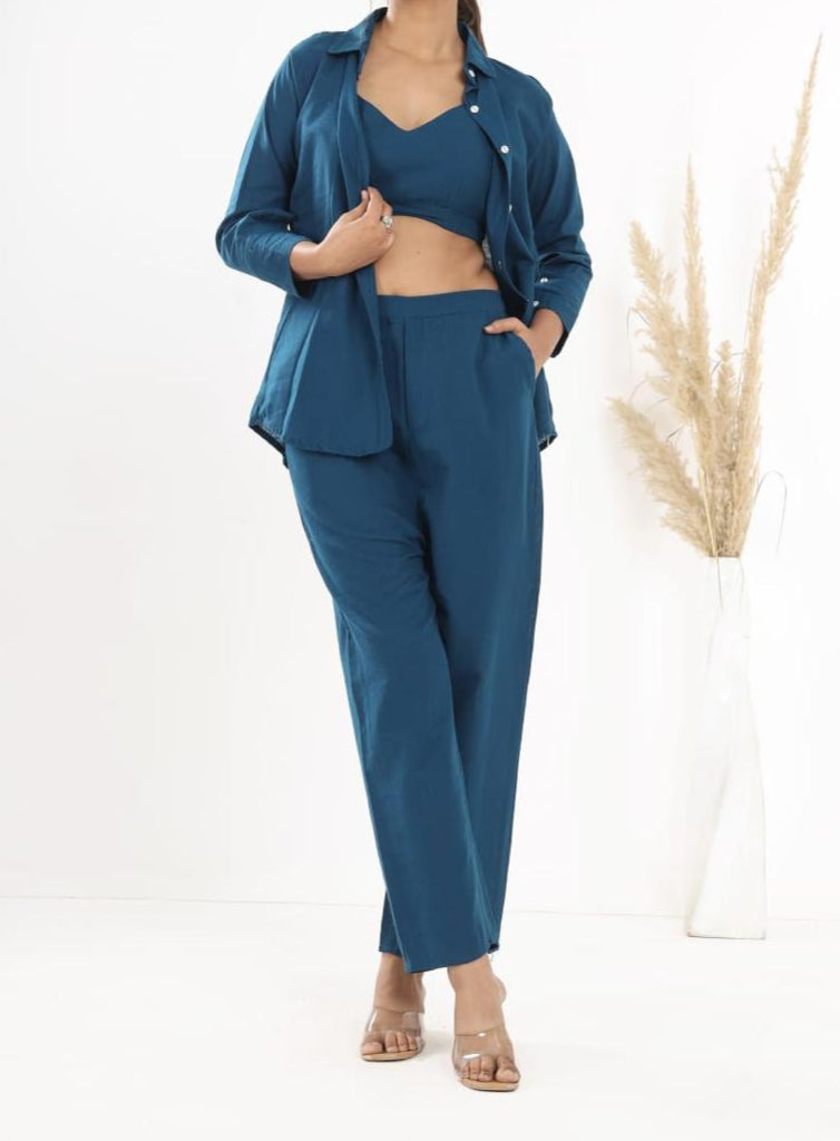 Mood Mingle Cotton Coord Set[ Top , Shirt , Pant]