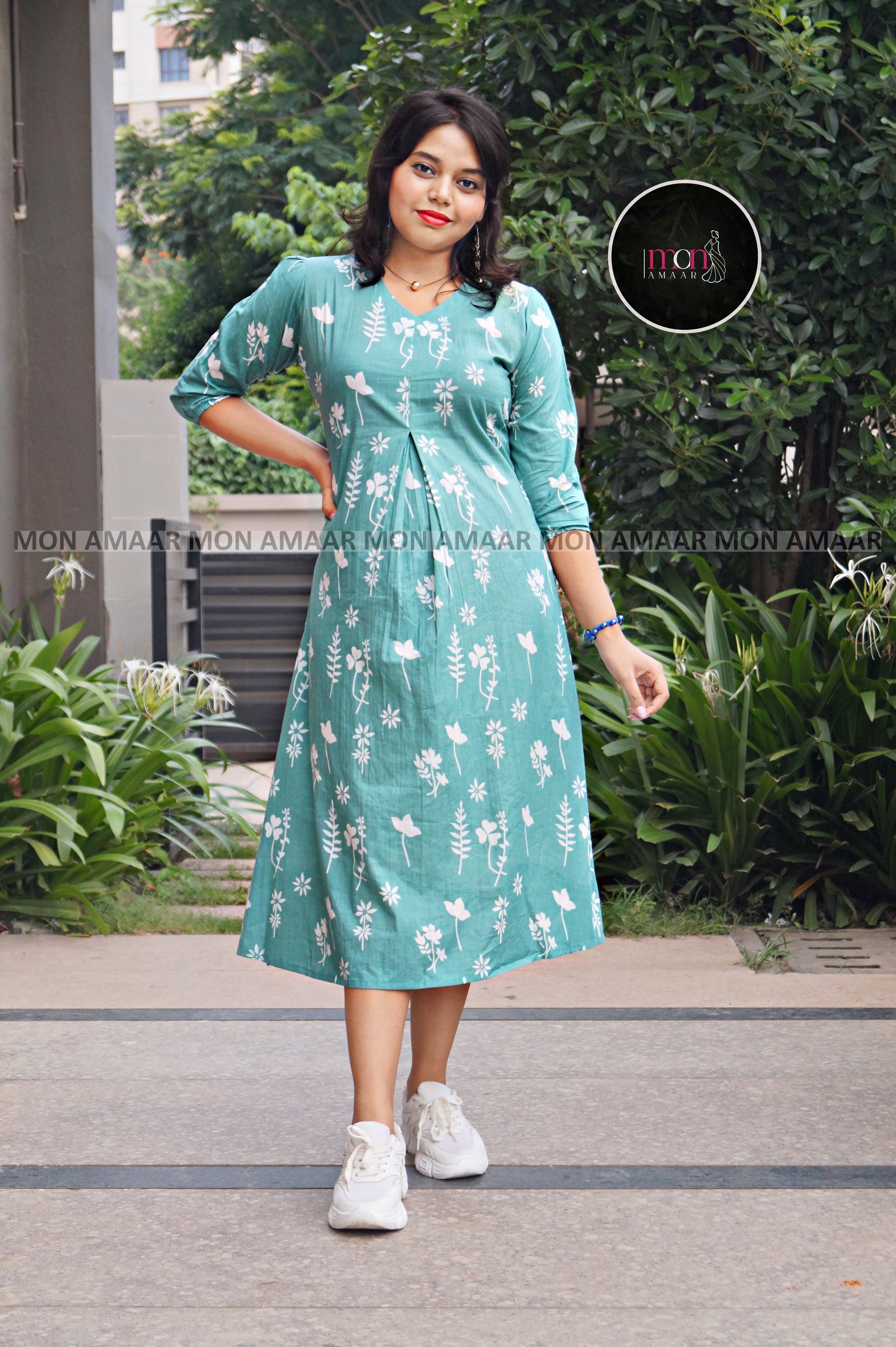 Introducing our soft Cotton dress is a timeless classic for versatile elegance. This stunning = dress features likes flower print that is trendy and gorgeous. Made with high-quality cotton , this set is not only cool but also comfortable to wear. Elevate your style game with this must-have set!