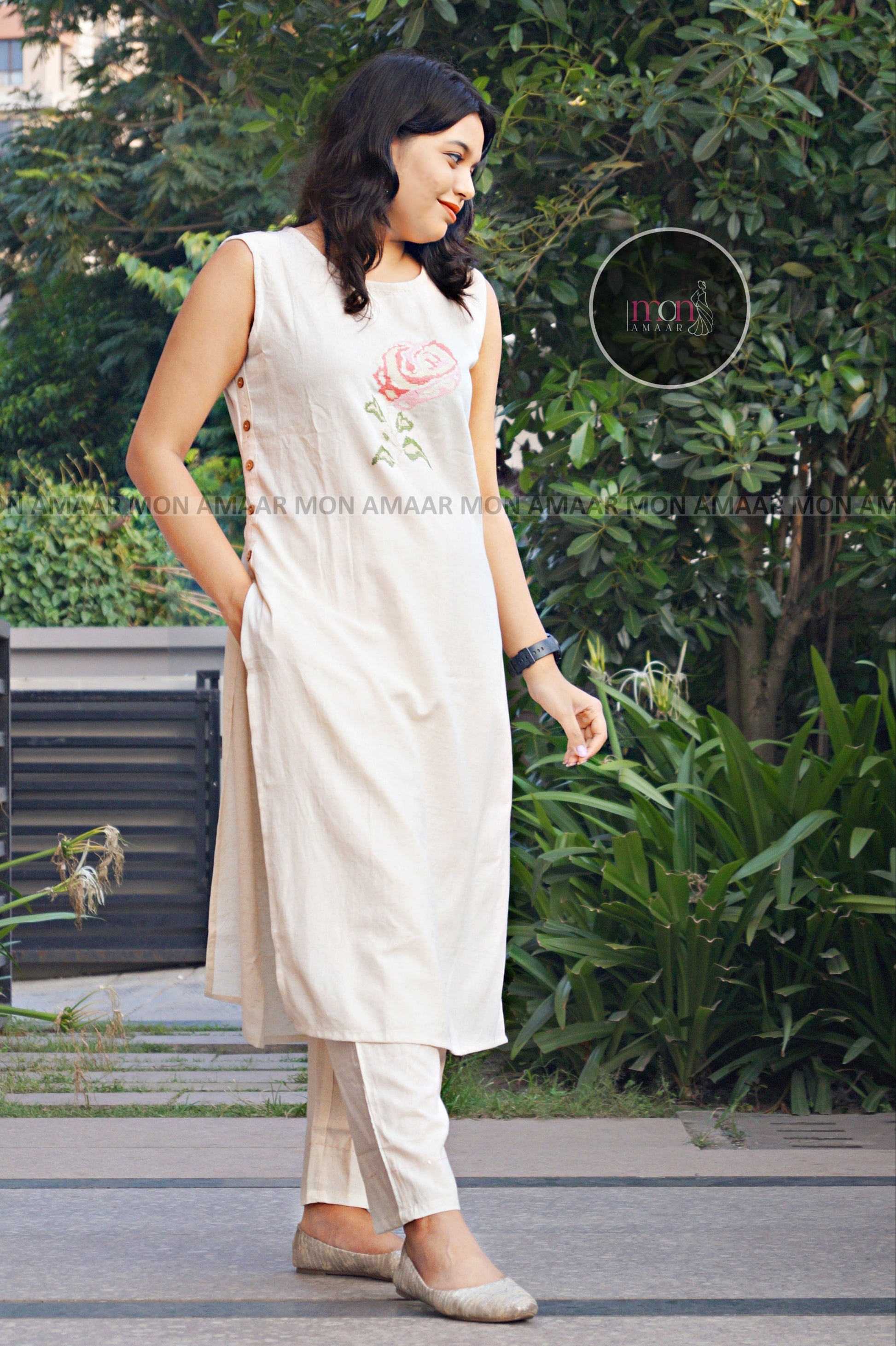 Welcoming our timeless classic for versatile elegance Twill & Thread Cotton Kurti Set. This stunning Kurti is trendy and gorgeous. Made with high-quality south slub cotton , this set is not only cool but also comfortable to wear. Elevate your style game with this must-have set!