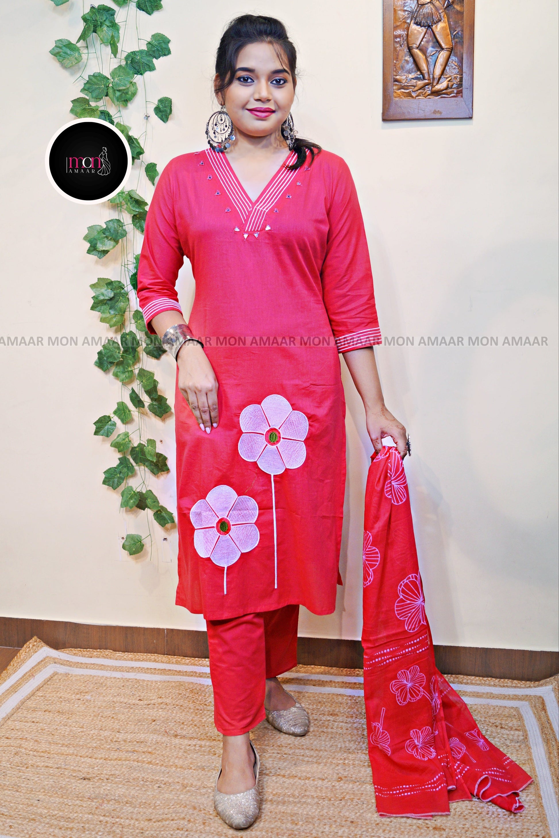 Introducing our Cotton Kurti Set a timeless classic for versatile elegance. This stunning set features embroidery work that is trendy and gorgeous. Made with high-quality cotton , this set is not only cool but also comfortable to wear. Elevate your style game with this must-have set.