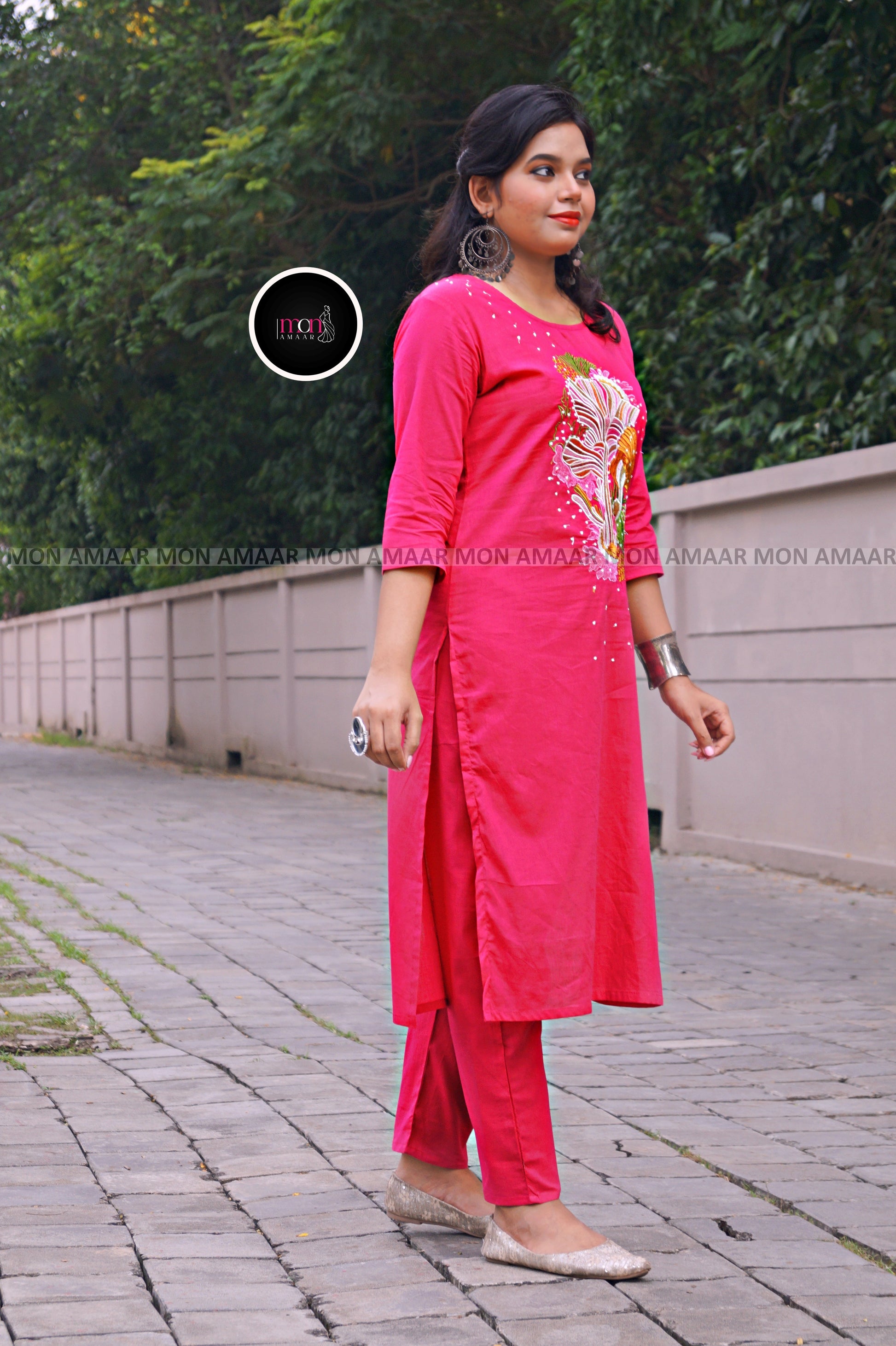 Introducing our soft Cotton Kurti Set a timeless classic for versatile elegance. This stunning Kurti set features likes floral embroidery work that is trendy and gorgeous. Made with high-quality cotton , this set is not only cool but also comfortable to wear. Elevate your style game with this must-have set!