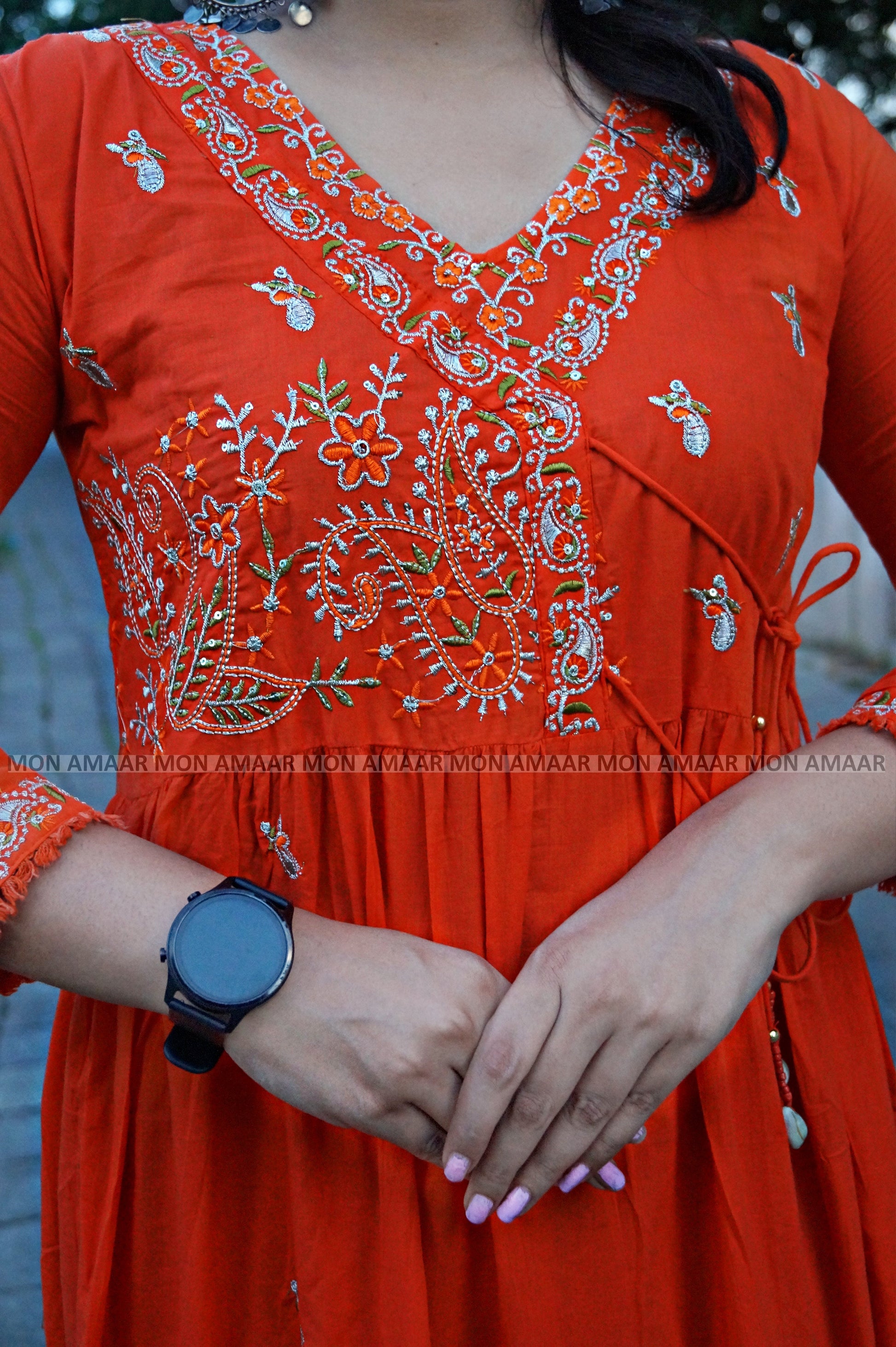 - Front has Beautiful embroidery work on yoke and side has also same embroidery work