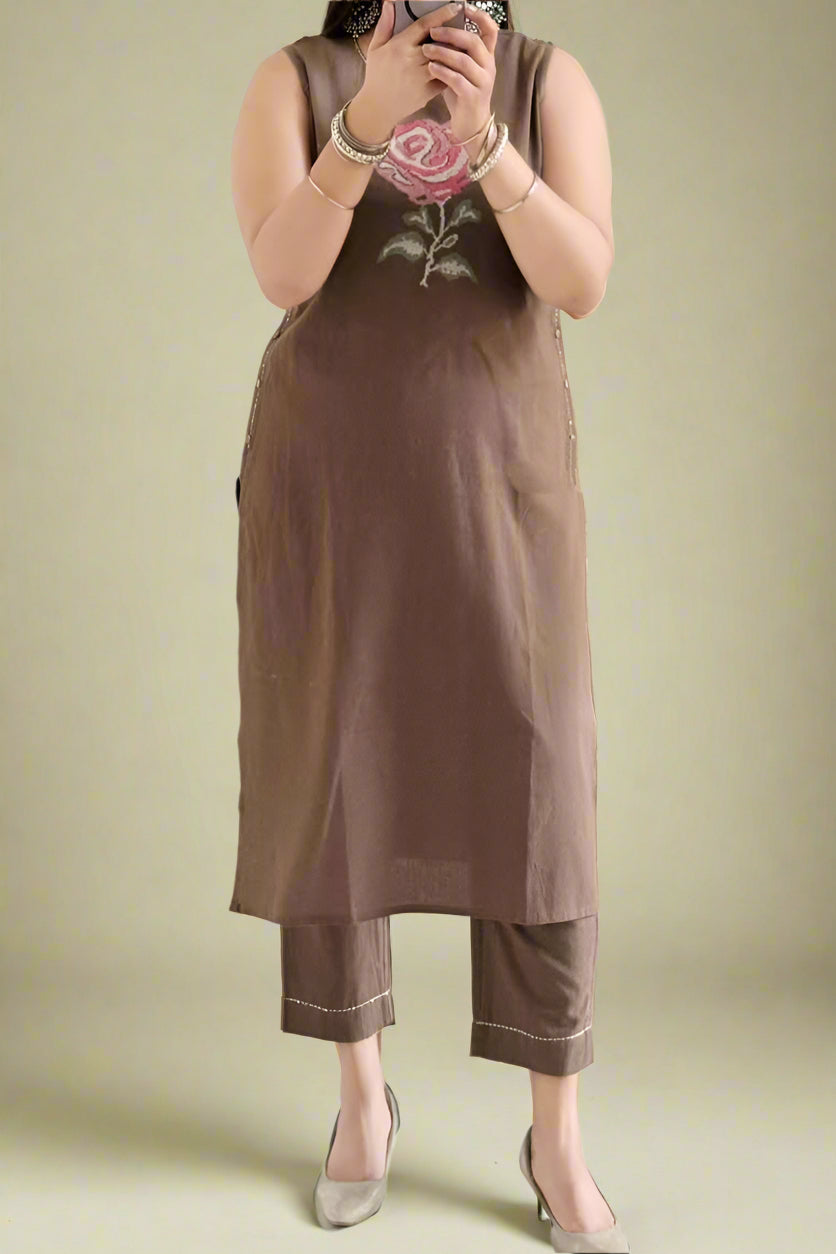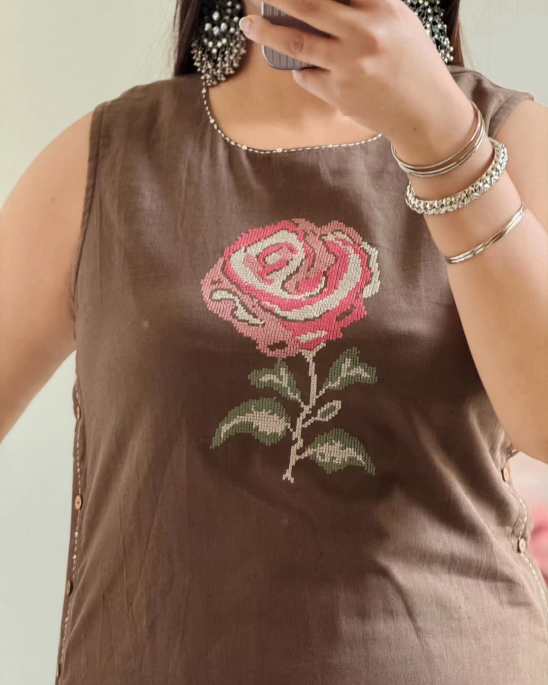 Introducing our soft Cotton coord Set a timeless classic for versatile elegance. This stunning coord set features likes embroidery work that is trendy and gorgeous. Made with high-quality cotton slub, this set is not only cool but also comfortable to wear. Elevate your style game with this must-have set!