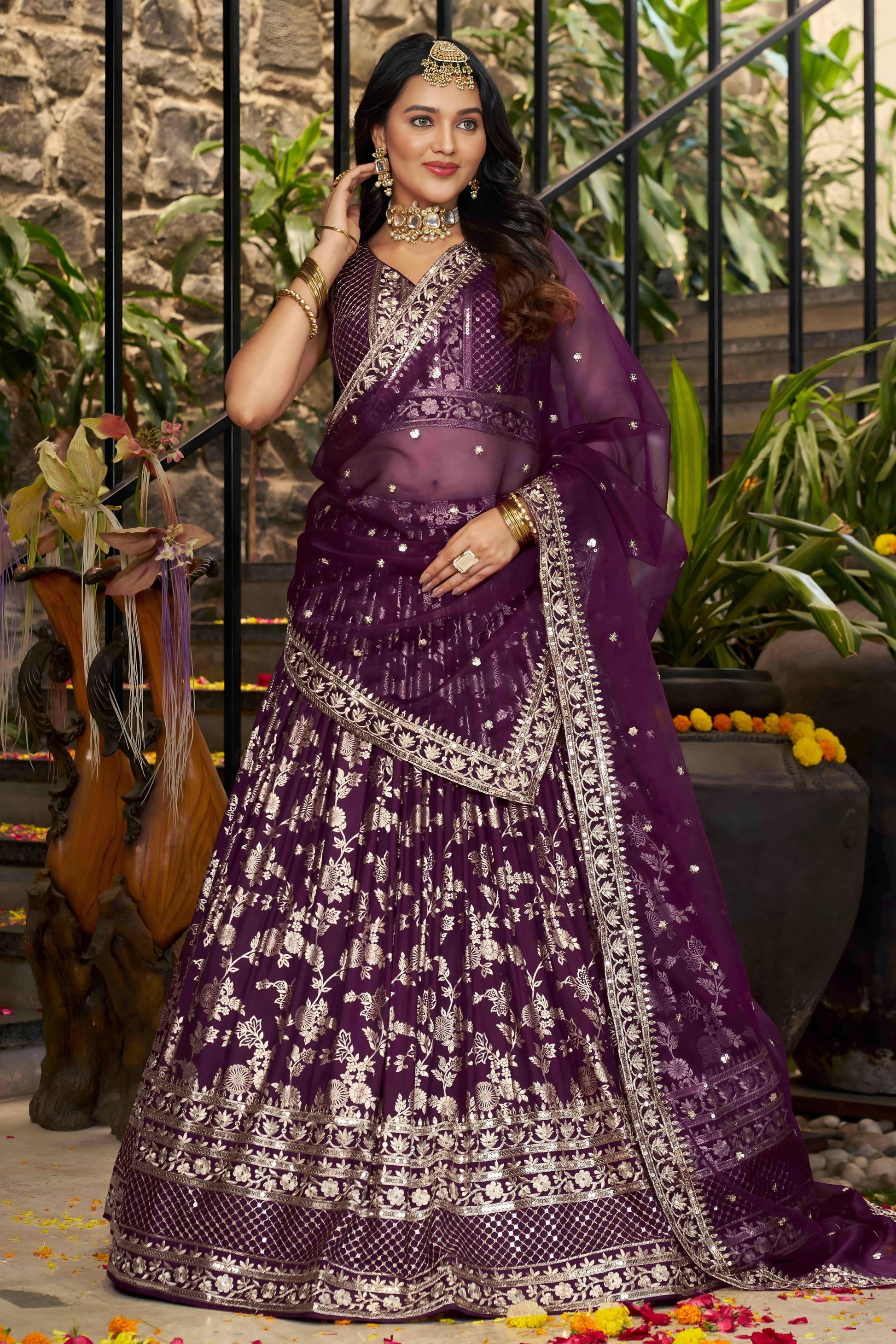 Unleash your inner boldness and stand out in the crowd Designer Dola Silk Lehenga ! These stunning ensembles are rich in color and feature stylish looks, making you the center of attention at every party and wedding. With this fancy silk [ blended ] fabric options to choose from, you can create a trendy and elegant look that is uniquely you. Get ready to stun in these gorgeous lehengas!