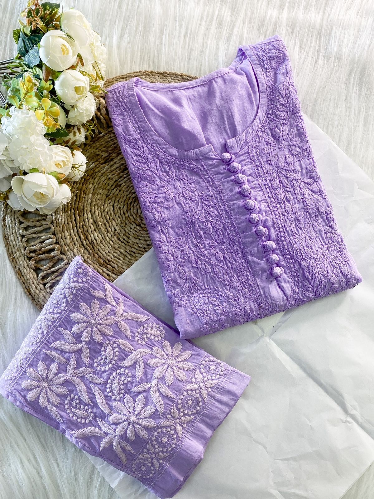 - Fabric: Cotton Chikankari Kurti with 2ps set