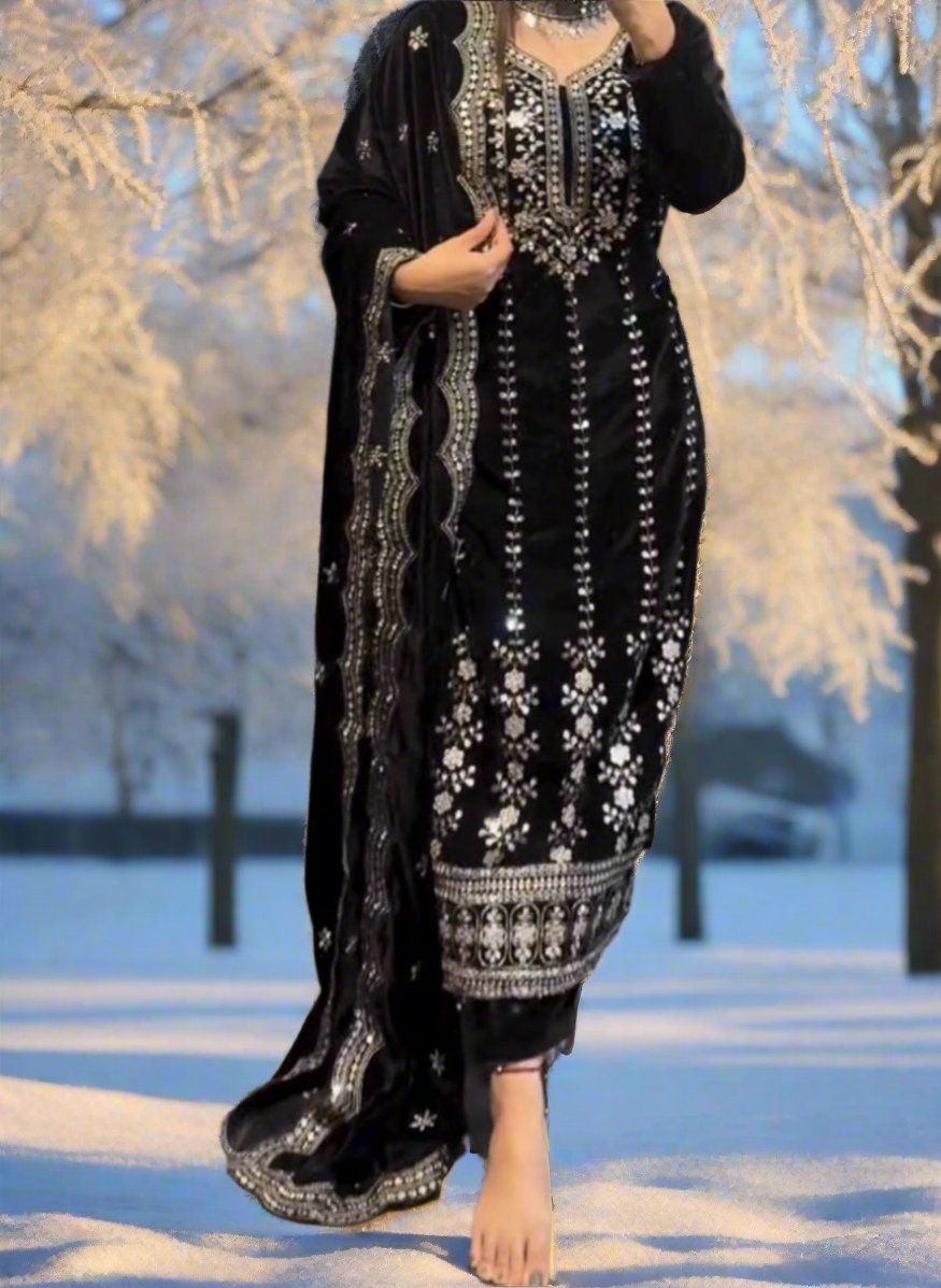 - Fabric :Heavy 9000 viscose Velvet With Heavy Embroidery 5 mm Sequins Work