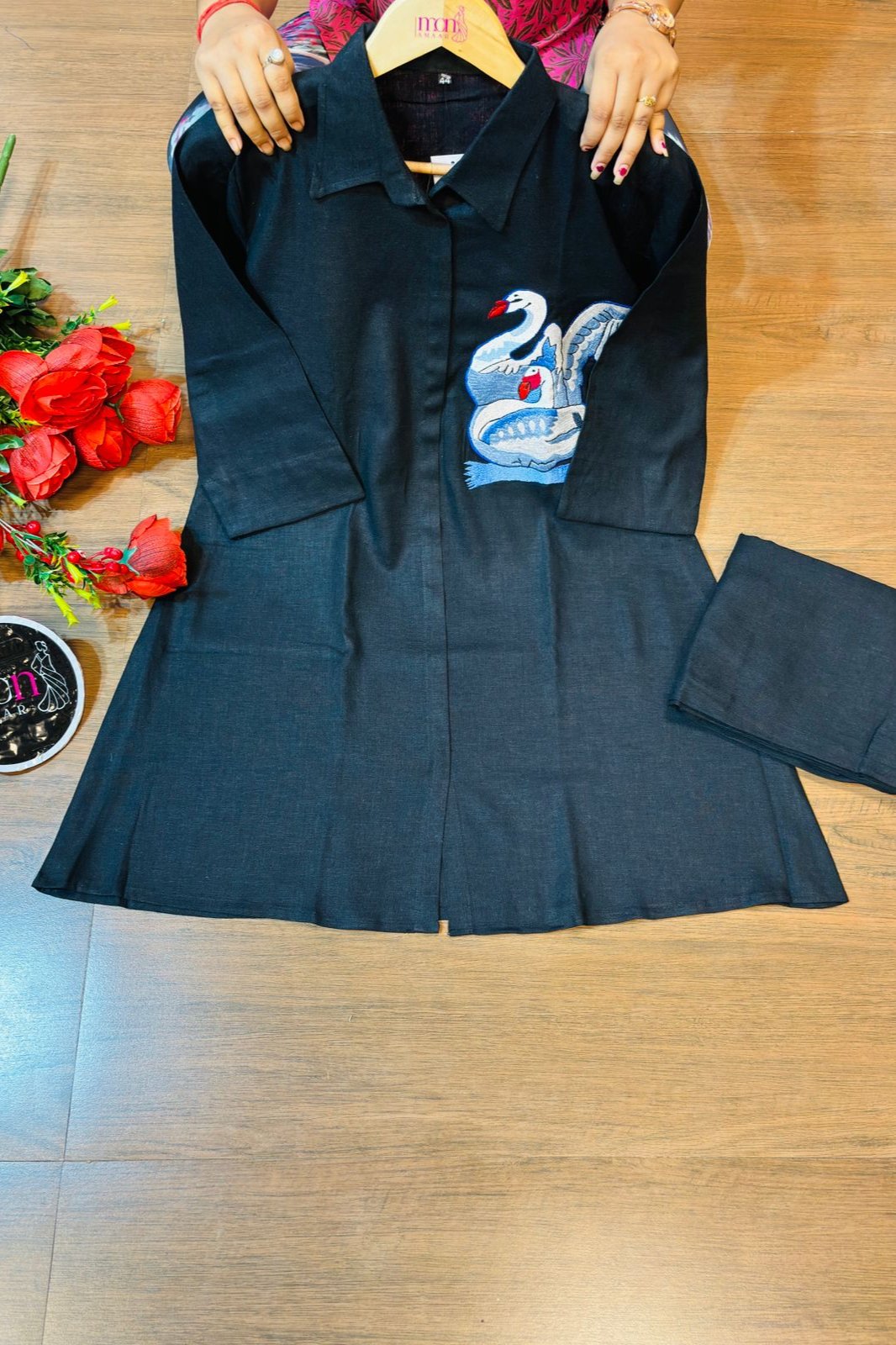 Welcoming our timeless classic for versatile elegance Feathery Friends Cotton Coord Set This stunning coord set features likes thread embroidery that is trendy and gorgeous. Made with high-quality cotton , this set is not only cool but also comfortable to wear. Elevate your style game with this must-have set!