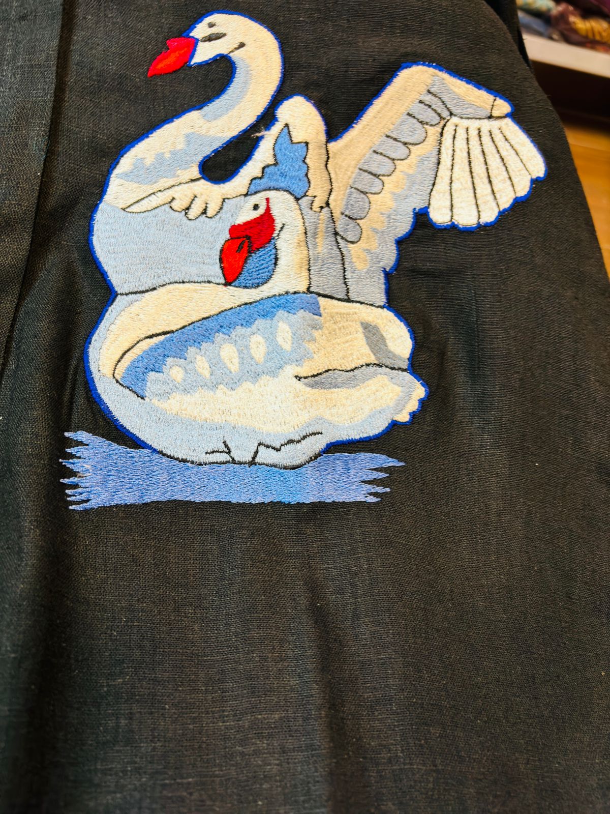 Front has cut style with swan design