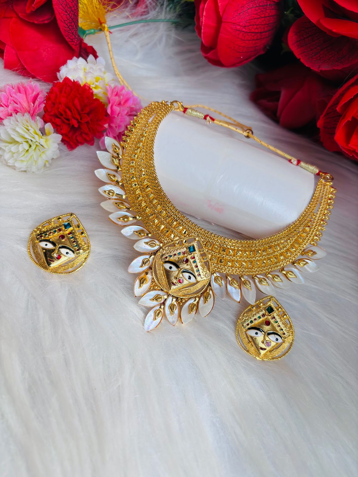 Enhance your outfit with a Gold-Plated necklace and Earring Set. perfect for adding a touch of shine. Versatile enough to pair with any outfit, this set is a must-have for any stylish wardrobe.