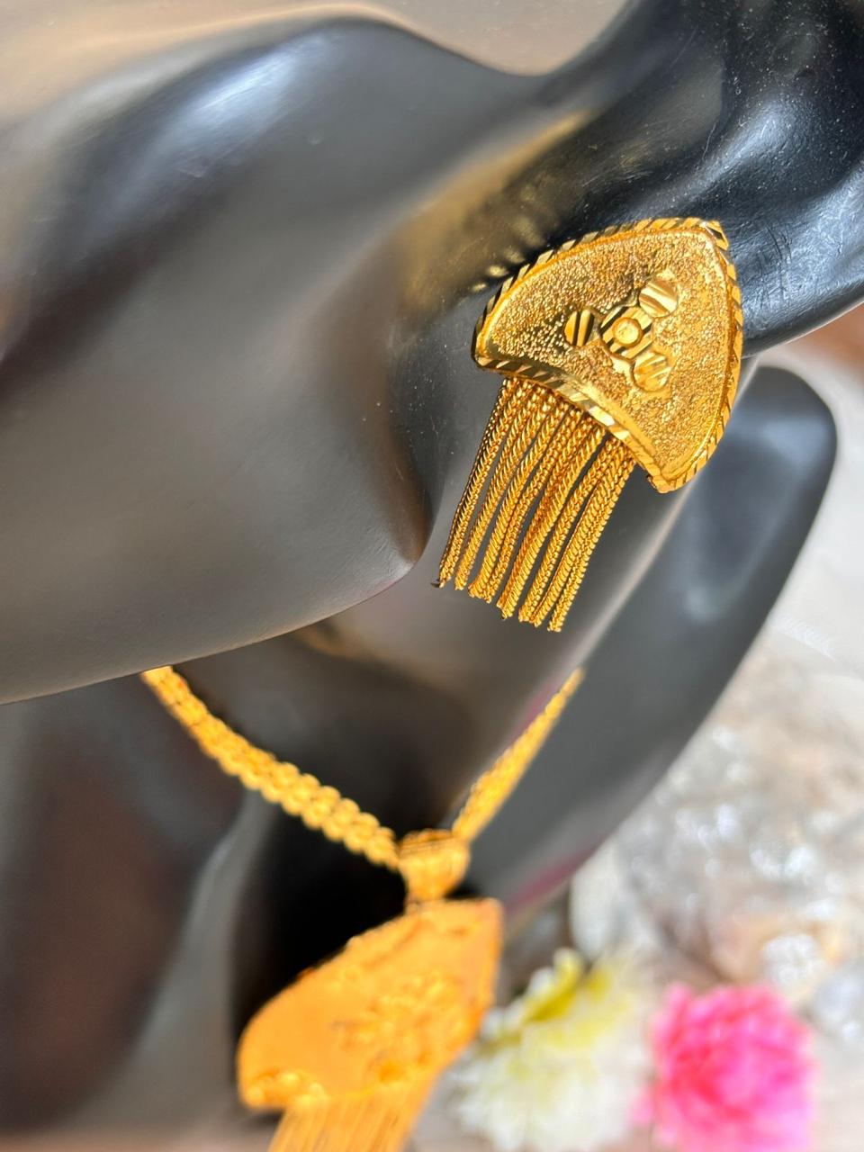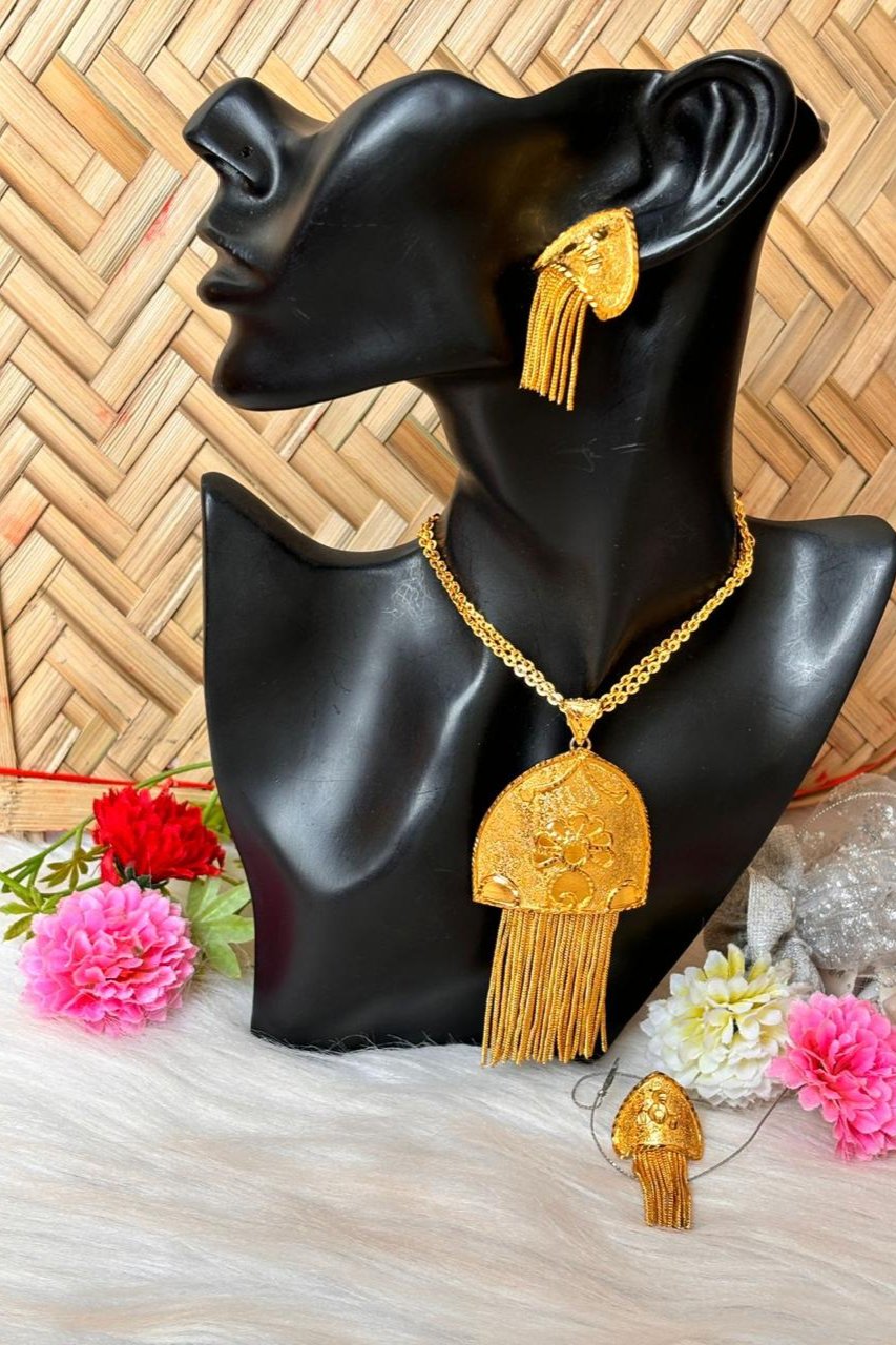 Elevate your ensemble with a gleaming and refined infusion of luminosity and brilliance from this Gold Plated Necklace Set. Showcase your distinct taste and create an impact with this essential adornment. Elevate any look with the versatile Gold plating that imparts effortless sophistication to your overall appearance. Elevate your style with this exquisite jewelry set.