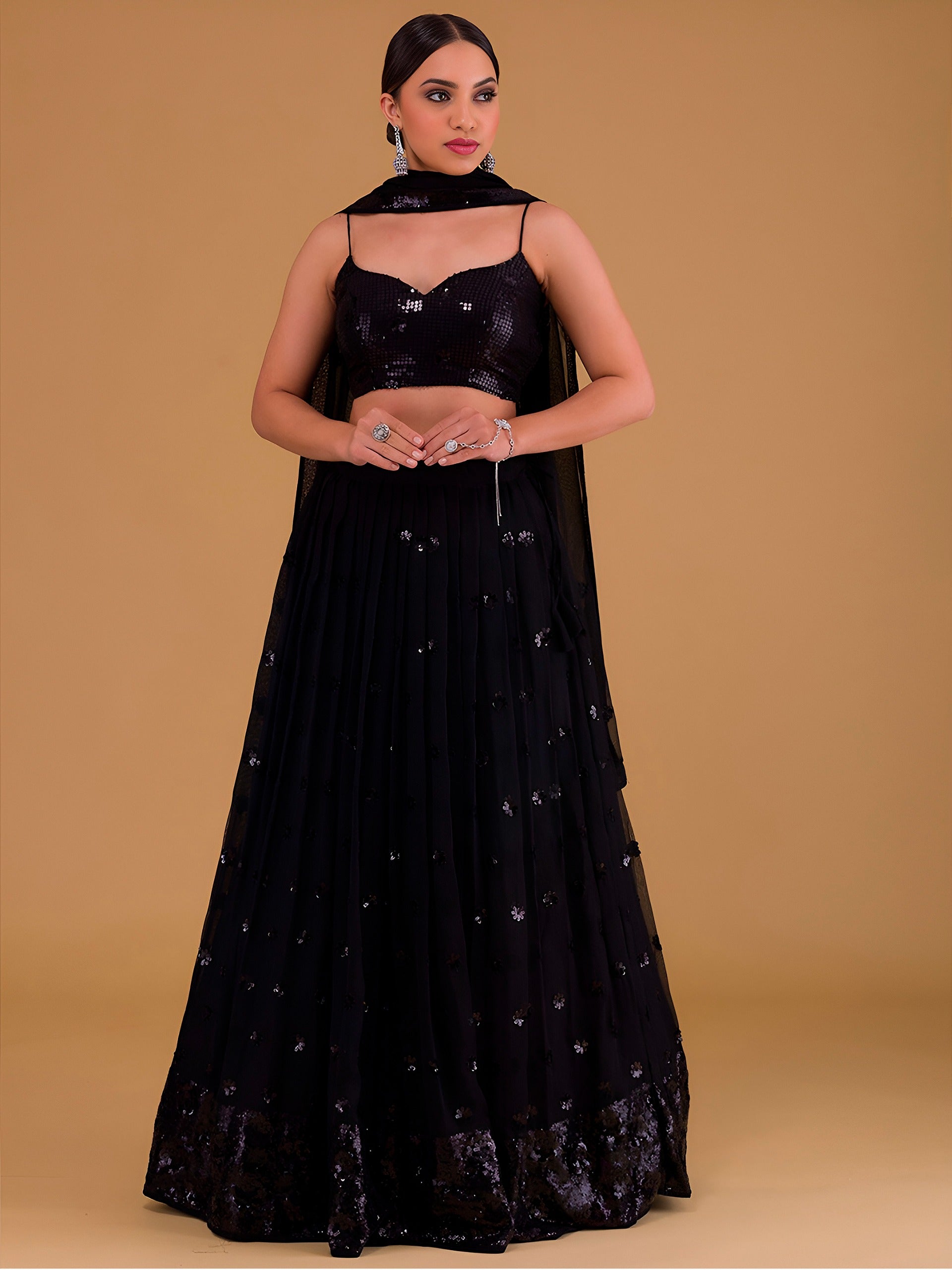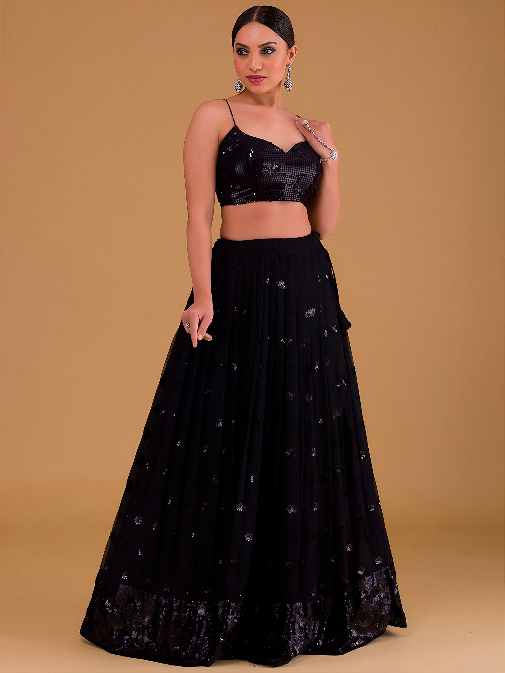 - Work : Sequins with thread Embroidery work all over