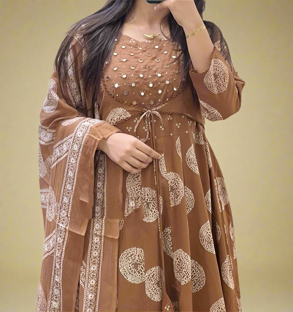 Introducing our soft Cotton Kurti Set a timeless classic for versatile elegance. This stunning Kurti set features likes shrug pattern kurti with front dori style & amazing flair. that is trendy and gorgeous. Made with high-quality cotton , this set is not only cool but also comfortable to wear. Elevate your style game with this must-have set!