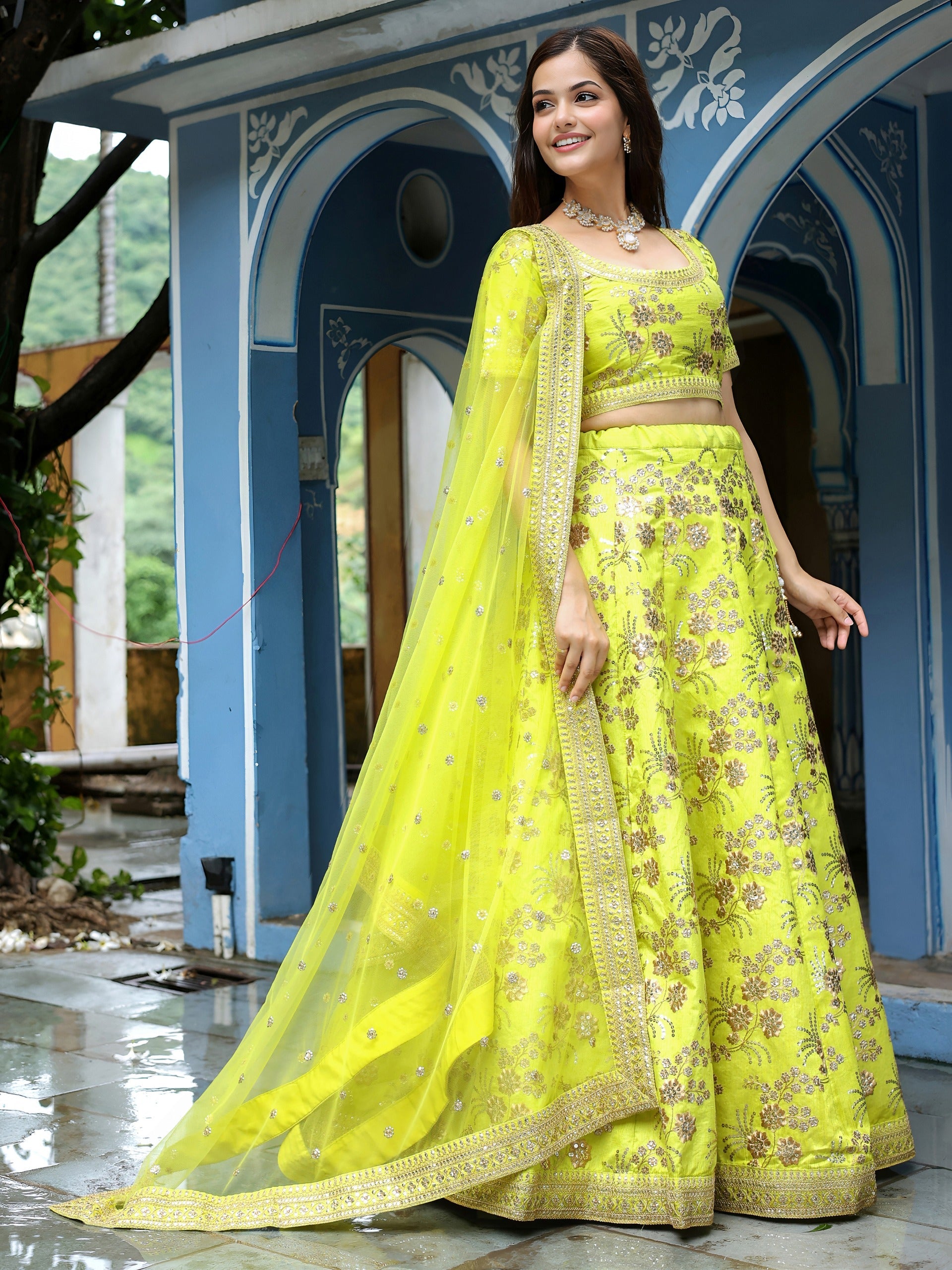 Unleash your inner boldness and stand out in the crowd Designer Slub Silk Lehenga [ fancy] ! These stunning ensembles are rich in color and feature stylish looks, making you the center of attention at every party and wedding. With this fancy silk [ blended ] fabric options to choose from, you can create a trendy and elegant look that is uniquely you. Get ready to stun in these gorgeous lehengas!