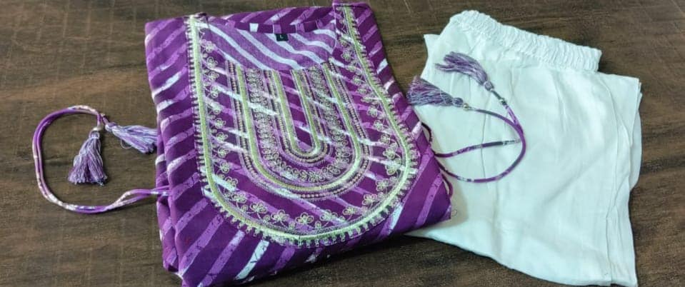 Chic and comfy - a winning combination with this Stylish Purple Naira Cut Sequins Work Kurti Pant Set! Offering a flattering fit and easy-breezy feel, this is the kind of outfit that definitely must be tried! So go on and add some sparkle to your wardrobe while still feeling comfy and fabulous. (You don't have to try so hard to look this good!)