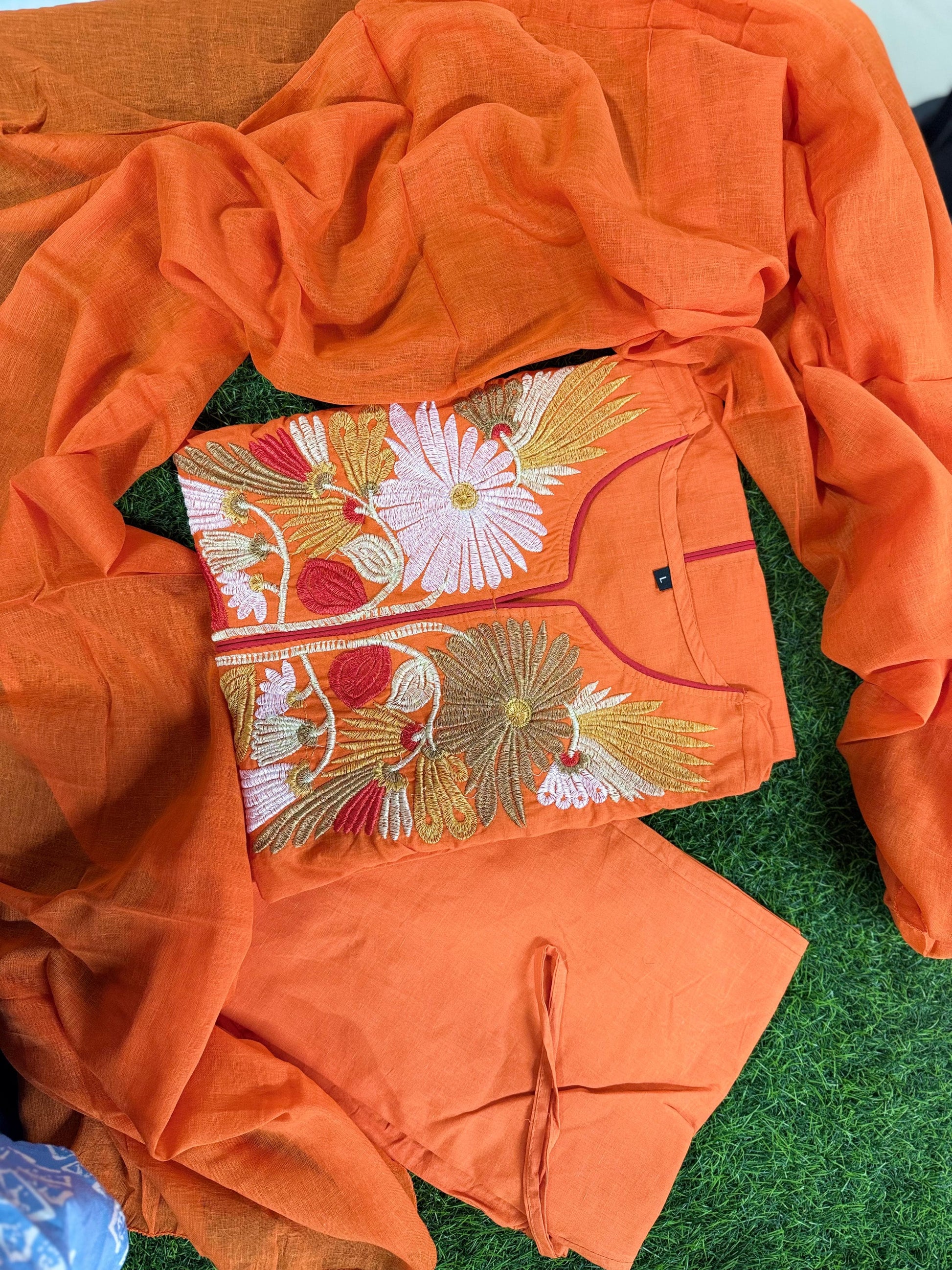 Introducing our soft Cotton Kurti Set a timeless classic for versatile elegance. This stunning Kurti set features likes embroidery and floral work that is trendy and gorgeous. Made with high-quality cotton 60/60 , this set is not only cool but also comfortable to wear. Elevate your style game with this must-have set!