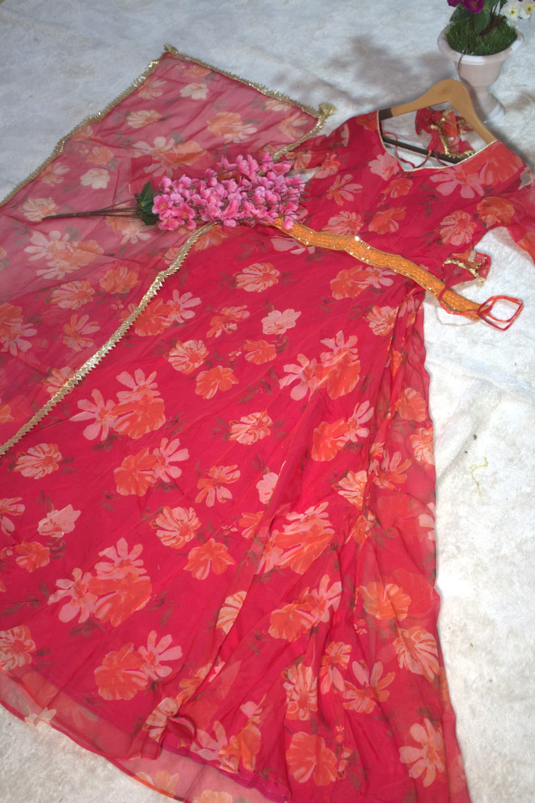 FeatherRoot Organza Gown Set allows you to express your timeless beauty. It is noted for its elegant and sophisticated appearance, which is achieved using the finest fancy organza fabric along with flower print work . Its easy-to-wear design makes it appropriate for any occasion. This traditional and elegant ornament will elevate your look.