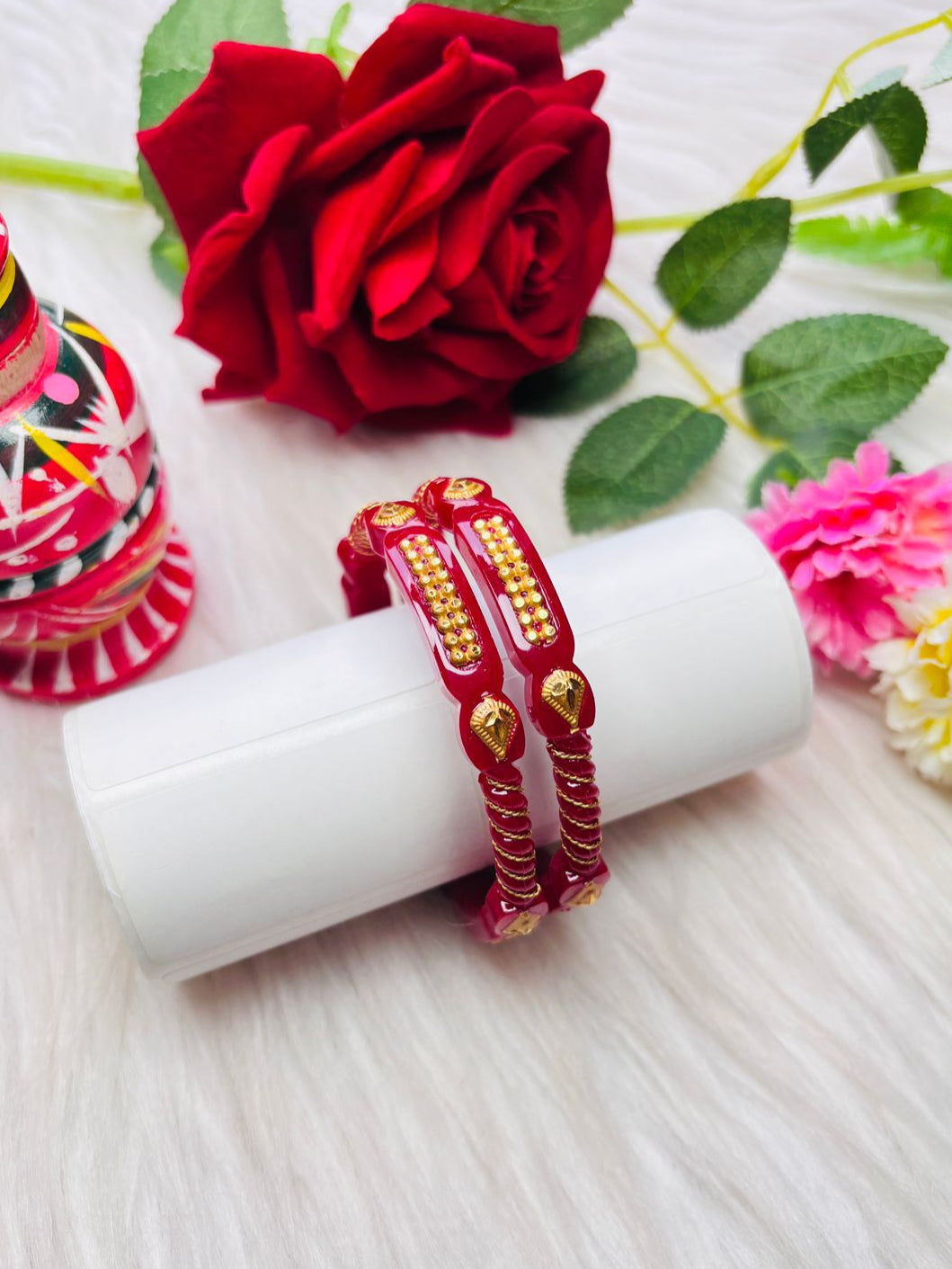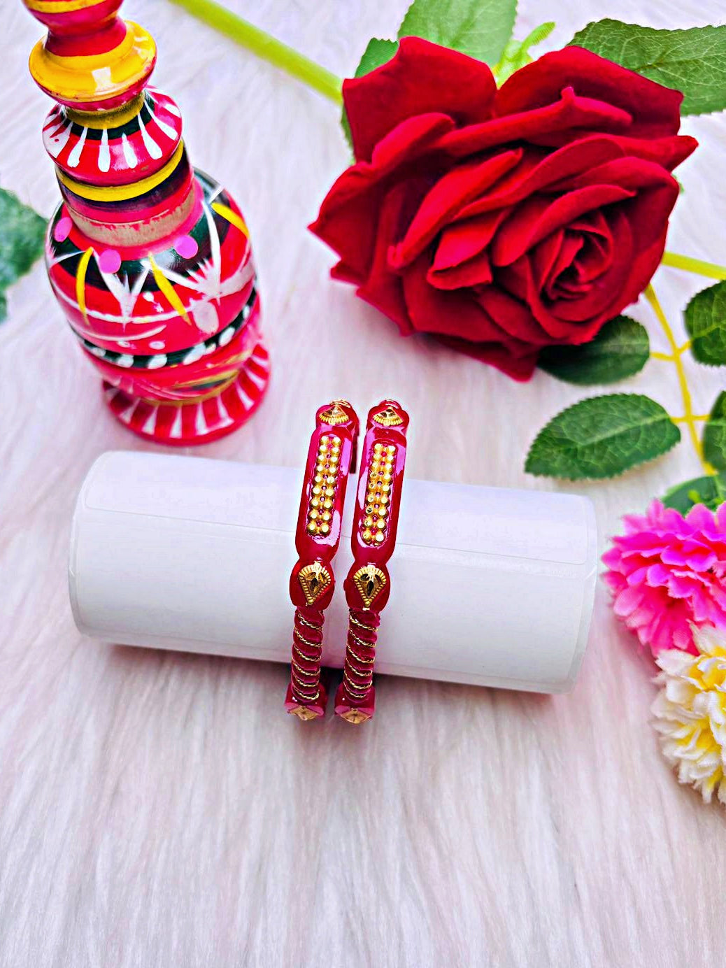 - Stylish Gold-Plated fancy Pola(red Color Bangle) Bandhano [not made from conch shell]