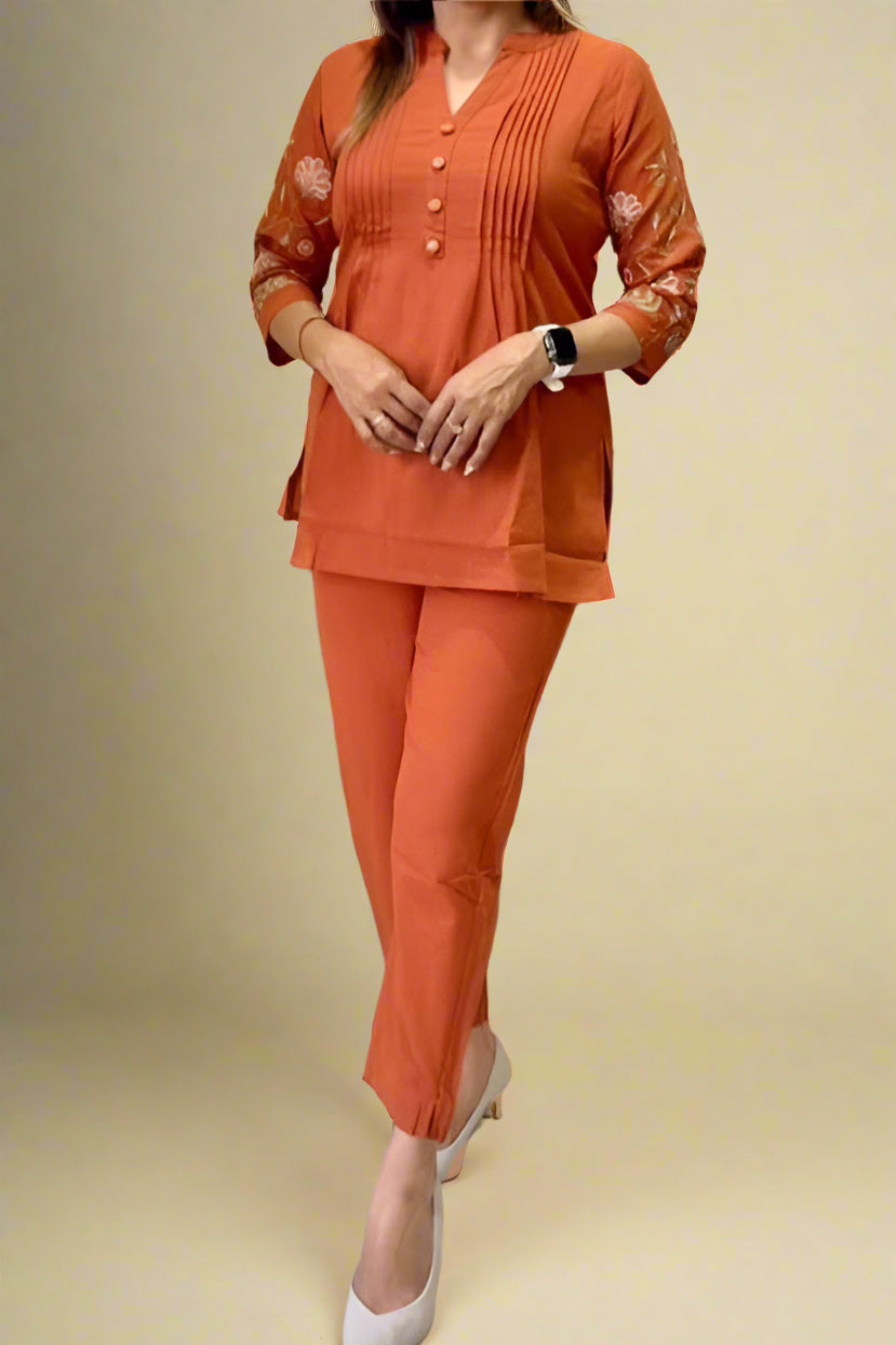 Introducing our Solid Colors Cotton Cord Set a timeless classic for versatile elegance. This stunning coords set features likes embroidery work that is trendy and gorgeous. Made with high-quality cotton , this set is not only cool but also comfortable to wear. Elevate your style game with this must-have set!