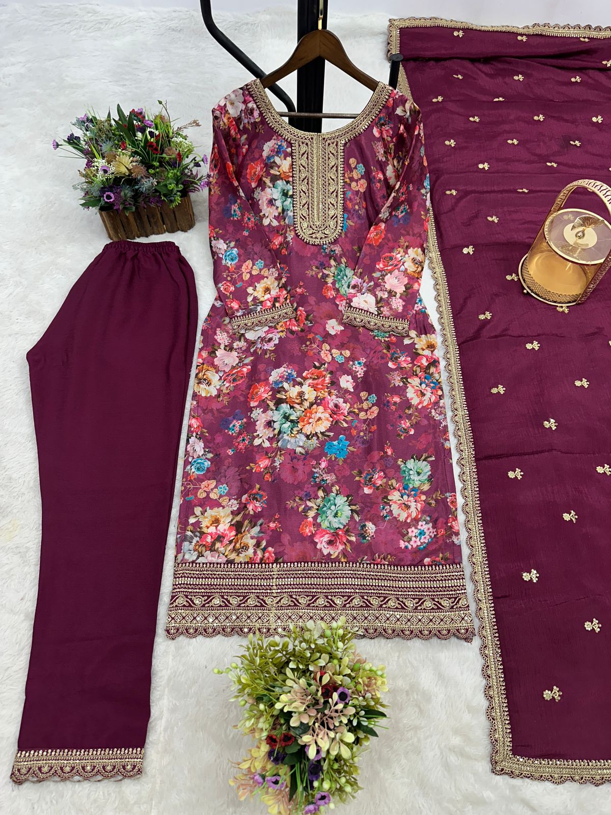 Retro Vibe Chinnon Silk Kurti Set allows you to express your timeless beauty. It is noted for its elegant and sophisticated appearance, which is achieved using the finest Chinnon Silk fabric and Heavy Embroidery Sequins Work. Its easy-to-wear design makes it appropriate for any occasion. This traditional and elegant ornament will elevate your look.