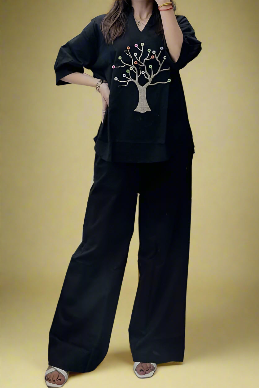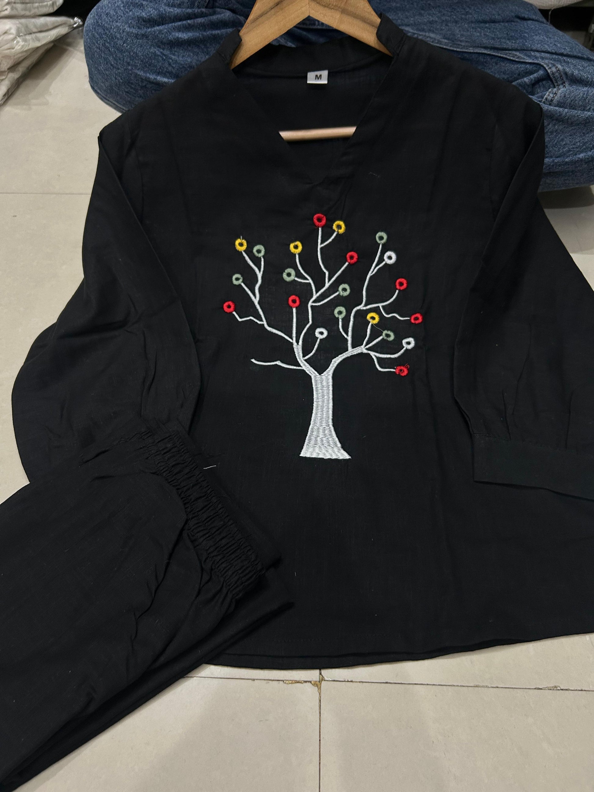 Introducing our Cotton Coord Set a timeless classic for versatile elegance. This stunning coords set features likes tree embroidery thread work that is trendy and gorgeous. Made with high-quality cotton slub, this set is not only cool but also comfortable to wear. Elevate your style game with this must-have set