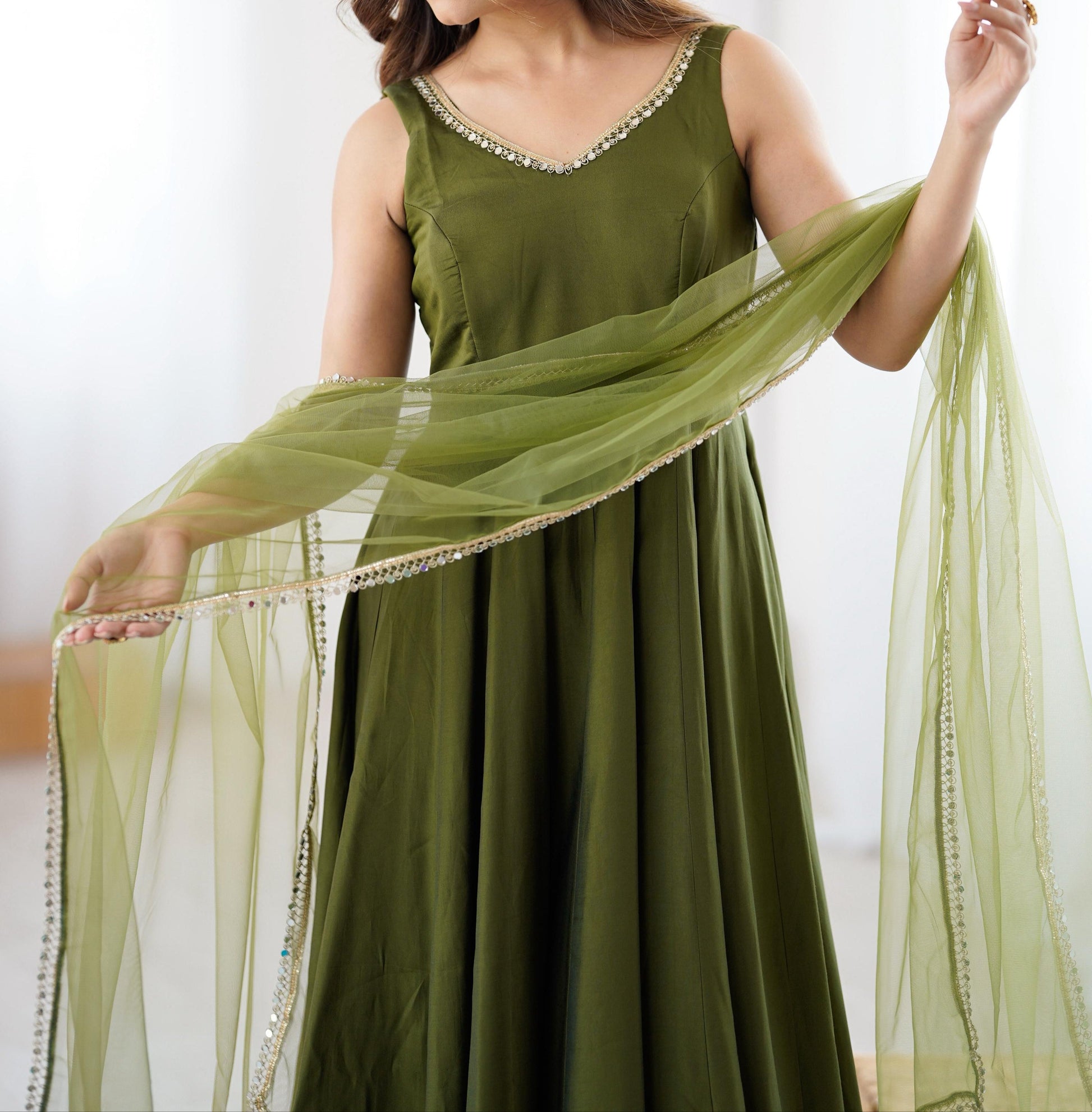 Crafted from roman chanderi silk fabric, this gown is a refined piece in classic design. From formal functions to relaxed outings, it exudes poise and adaptability, effortlessly enhancing your appearance. Boasting a flawless design, it's a guaranteed attention-grabber for any event.