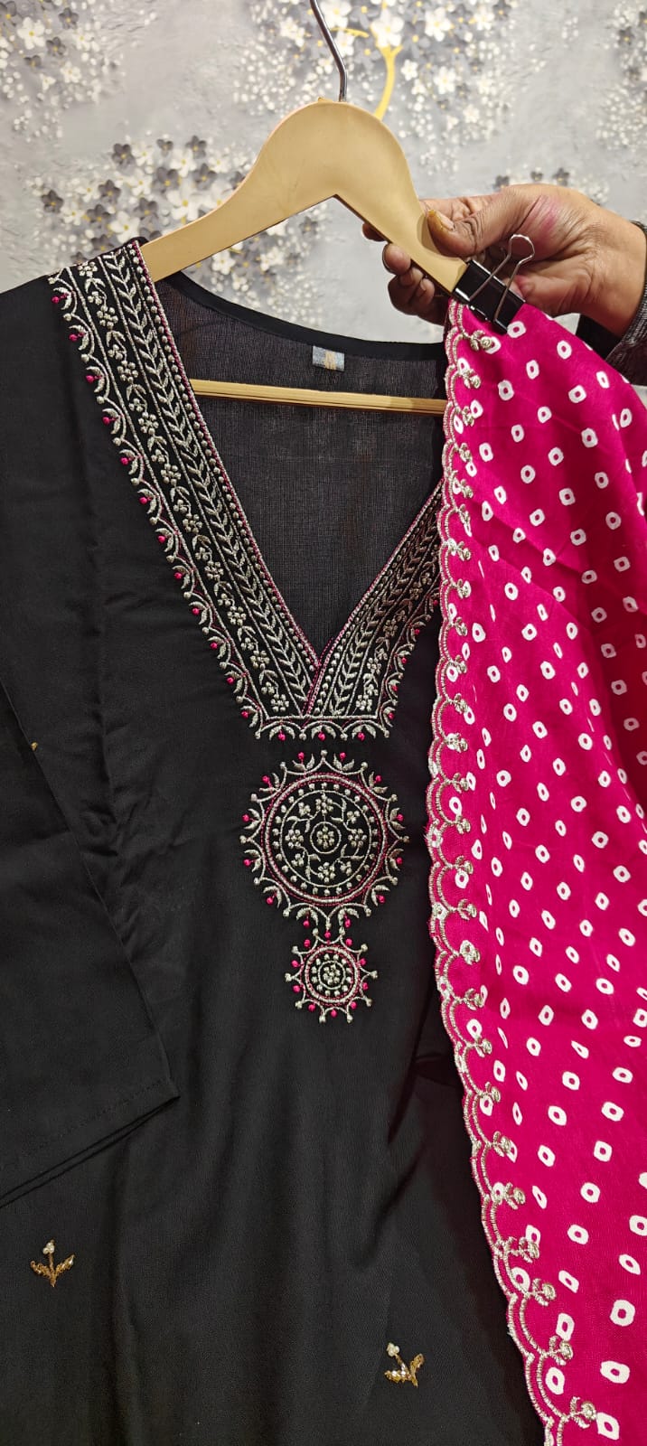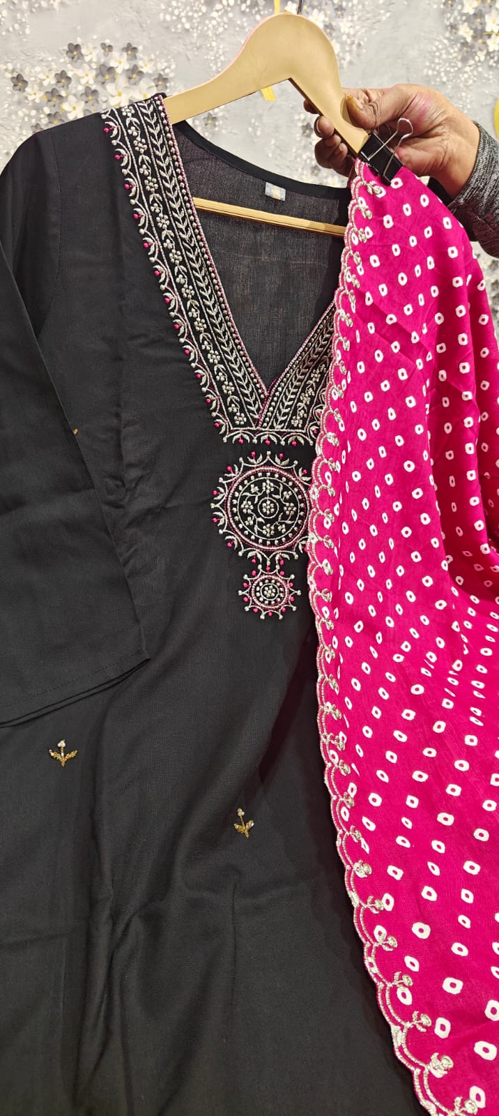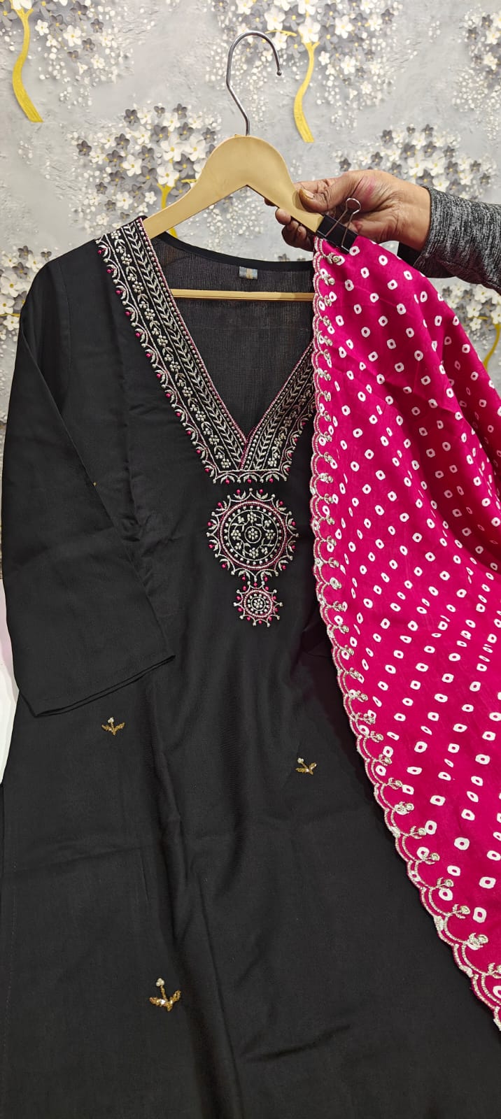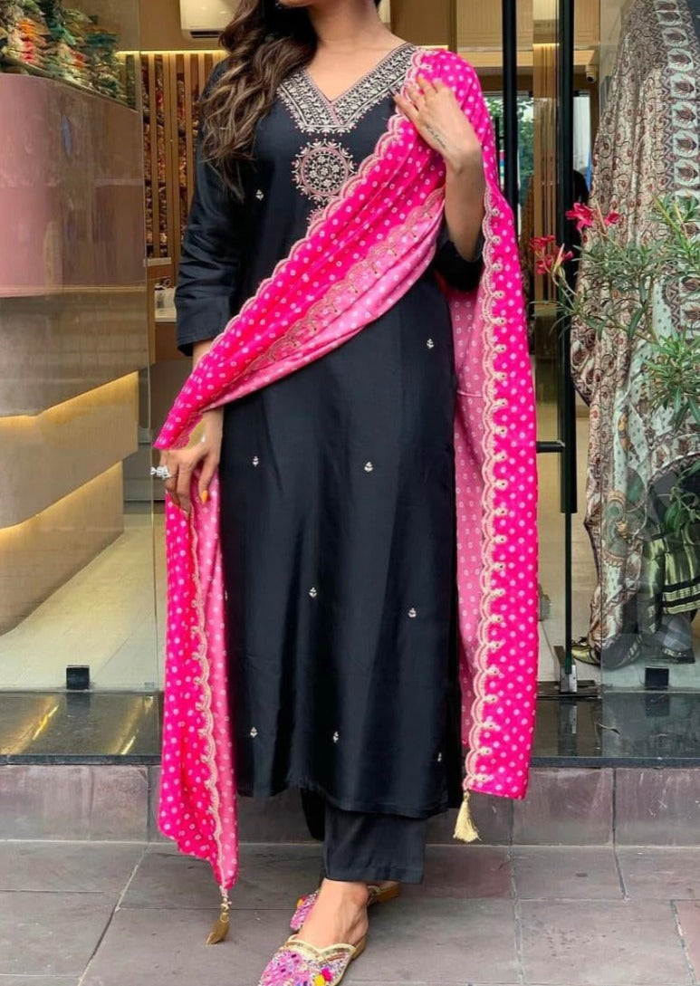 Uncover the charm and sophistication of our Suit Set, expertly crafted with Rayon and adorned with exquisite Embroidery and Sequins detailing on the kurta and dupatta. The addition of Tassels adds a touch of elegance to this ensemble, which is completed with coordinating pants and a printed dupatta. Sizes 38-44 are available.