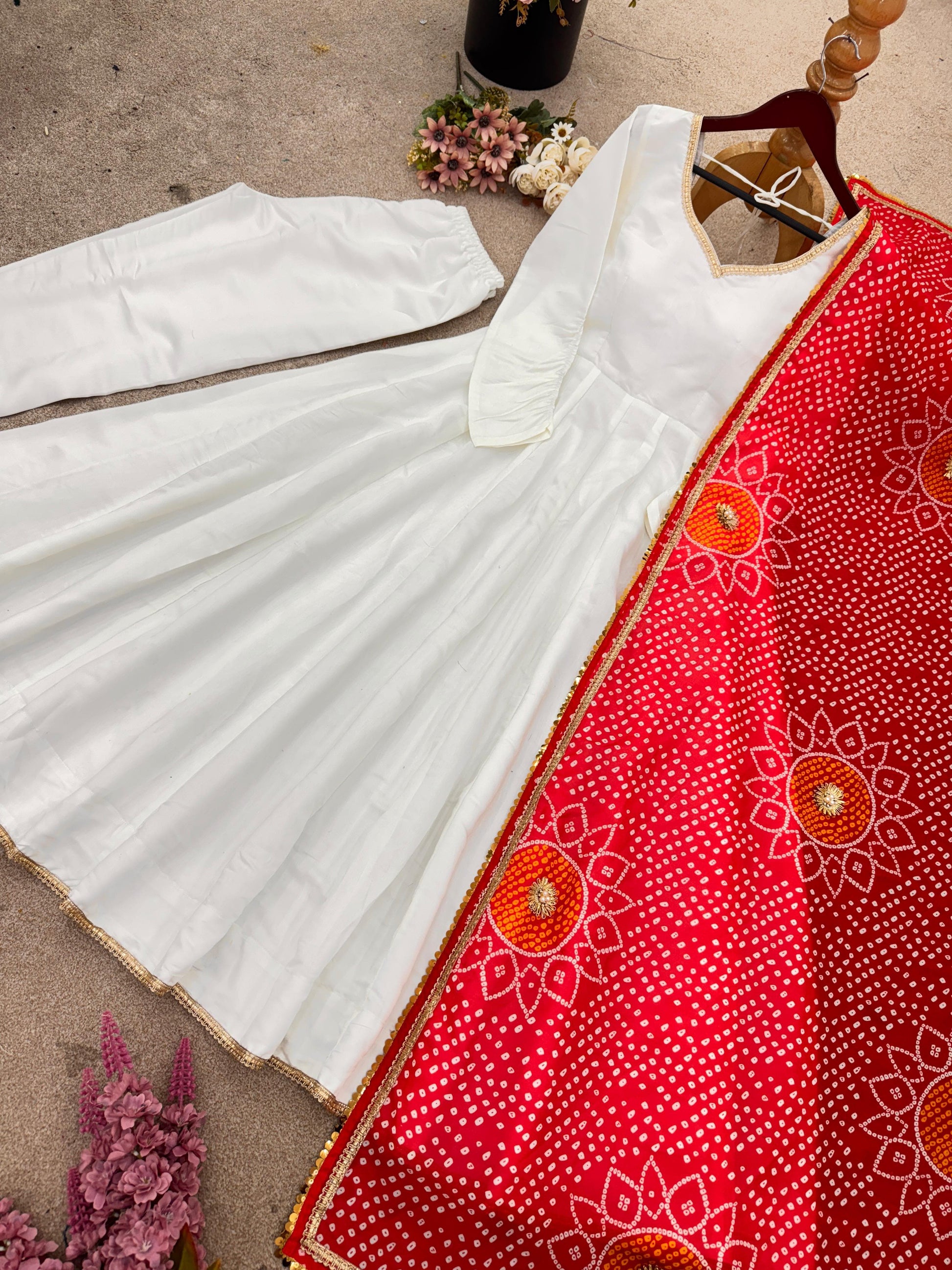 - Gown Fabric :Heavy fancy silk with long sleeves