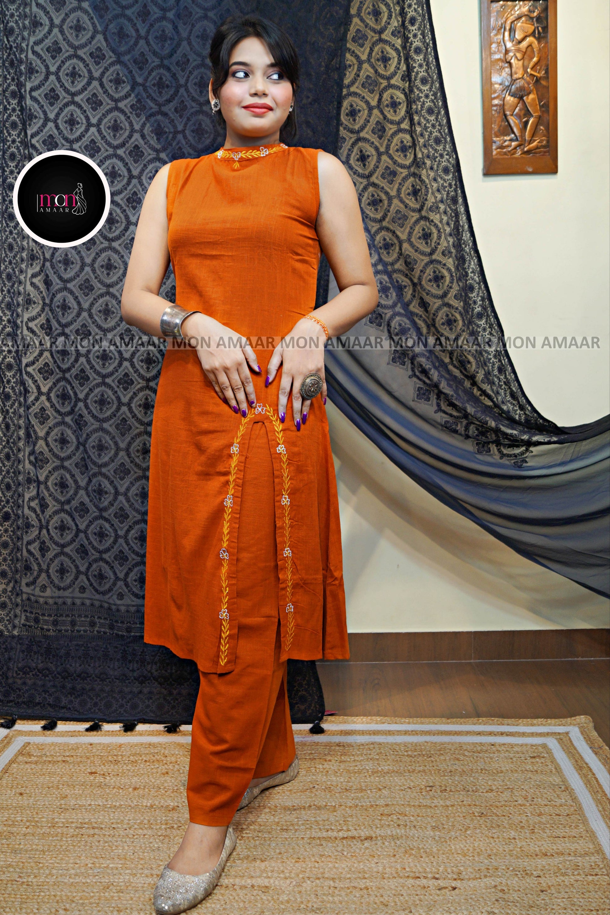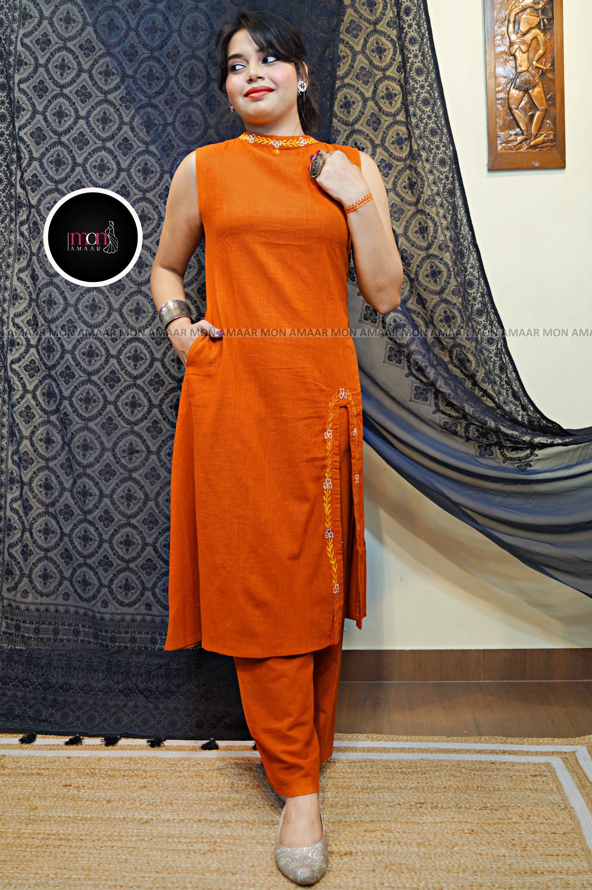 - Front has middle slit with Embroidery work